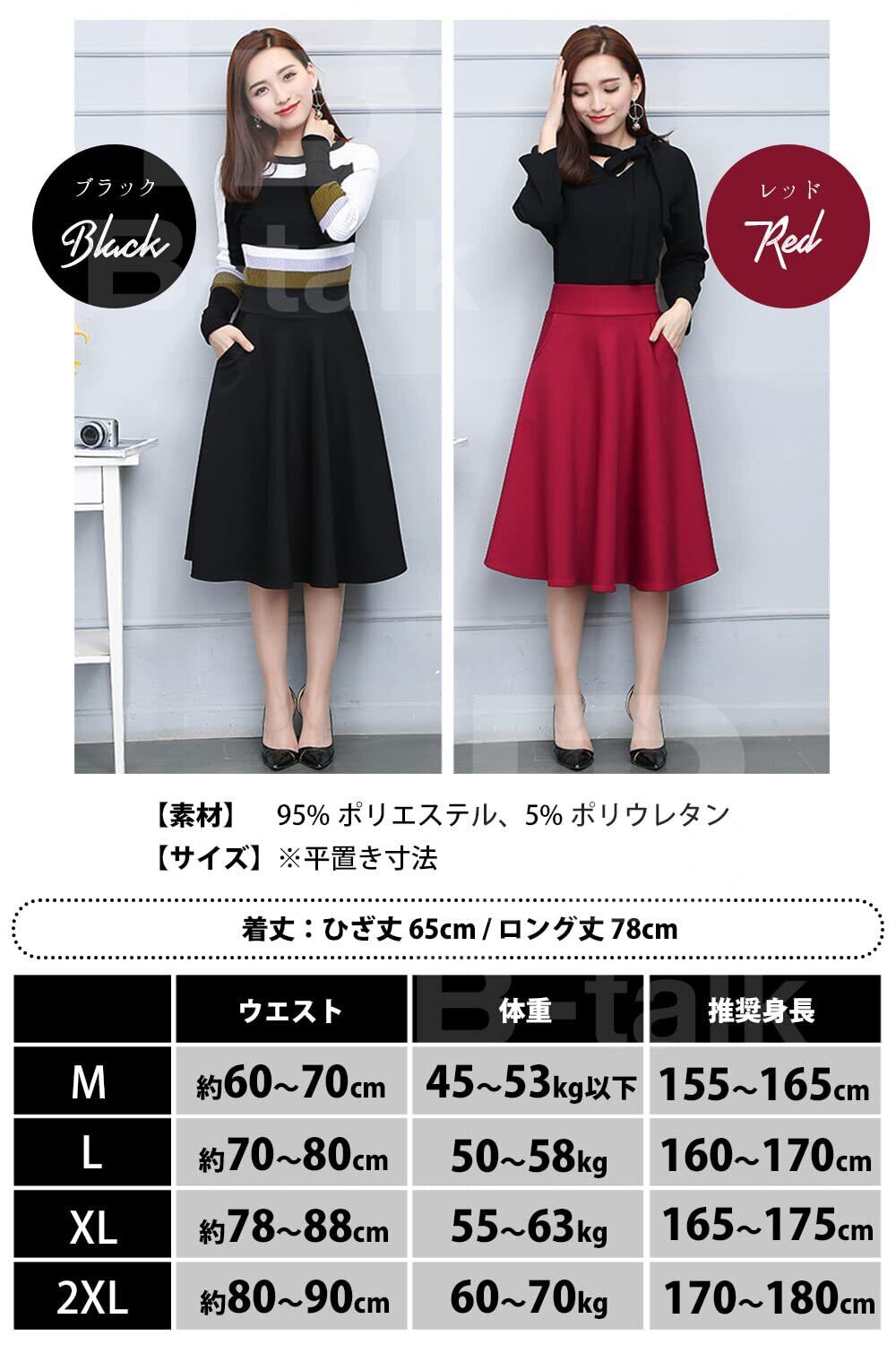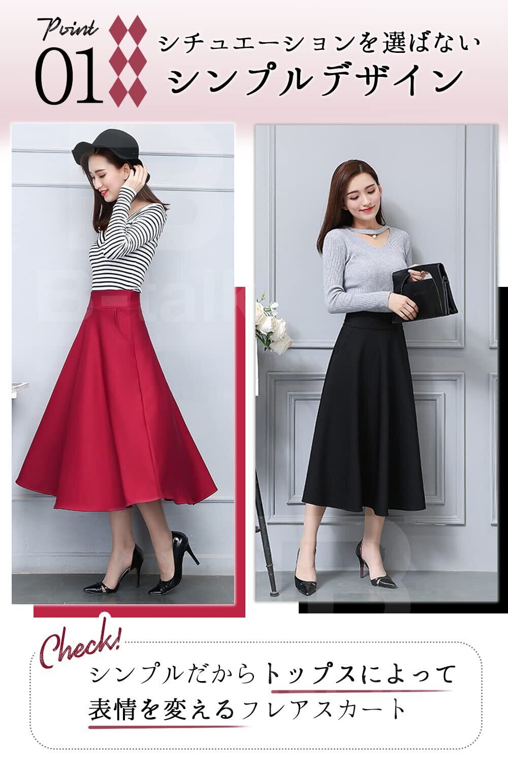 [ビートーク] フレアスカート 無地 シンプル スカート ポケット 付き レディース 通勤 OL オフィス M~2XL