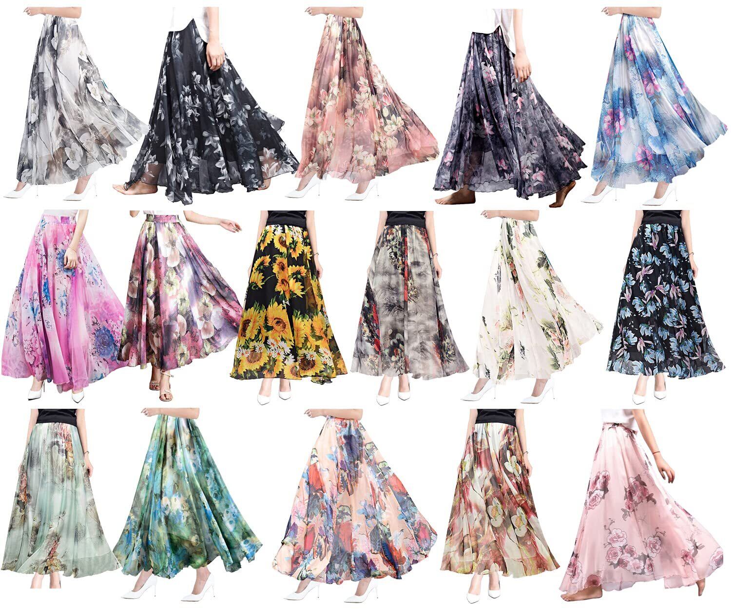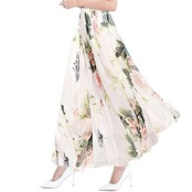 【在庫処分】[Qunqene] スカート ロング レディース ロングスカート プリーツスカート チュールスカート フレアスカート 花柄 シフォン エレガント かわいい 春 夏 秋 大きいサイズ オフィス 通勤 普段着 | 無意味ステッカー
