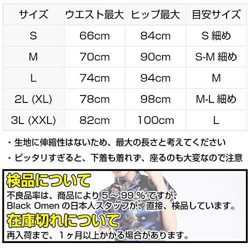 【3L(XXL)】バスト最大92cm、ウエスト最大82cm、ヒップ最大100cm、着丈130cm、肩幅39cm、袖丈15cm、目安サイズL