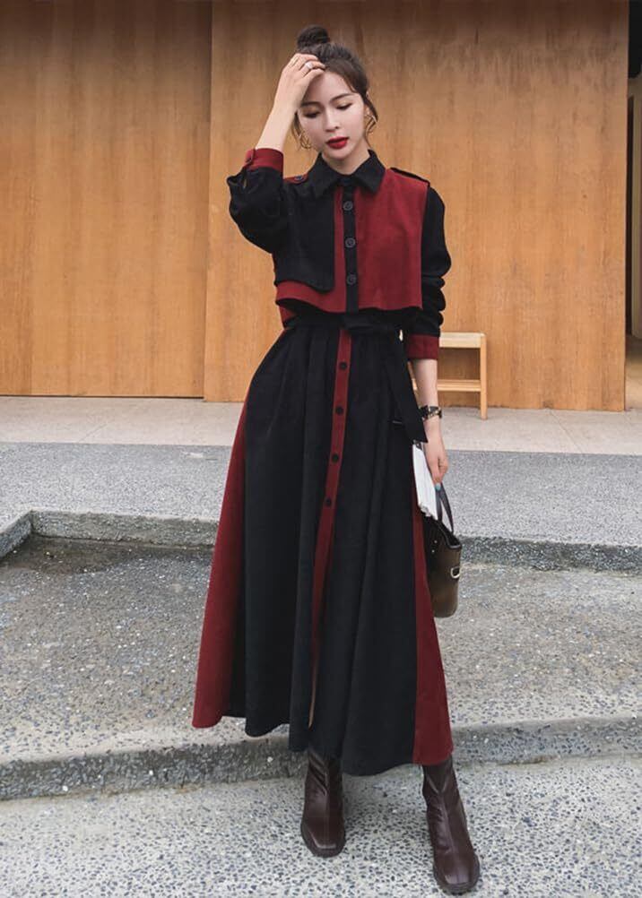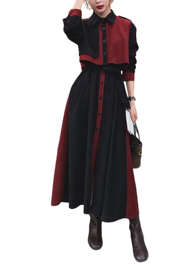 [Minesam] ワンピース レディース 秋冬 シャツワンピース Aライン ロング丈 春秋 きれいめ カジュアル 通勤