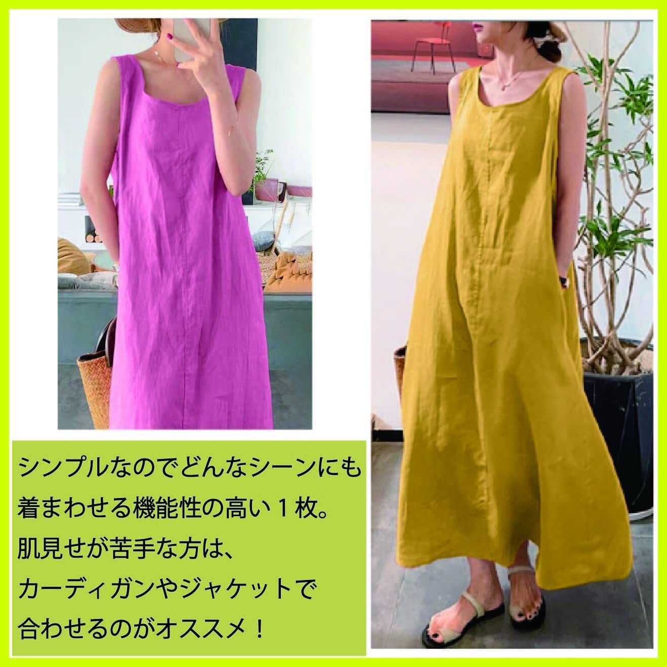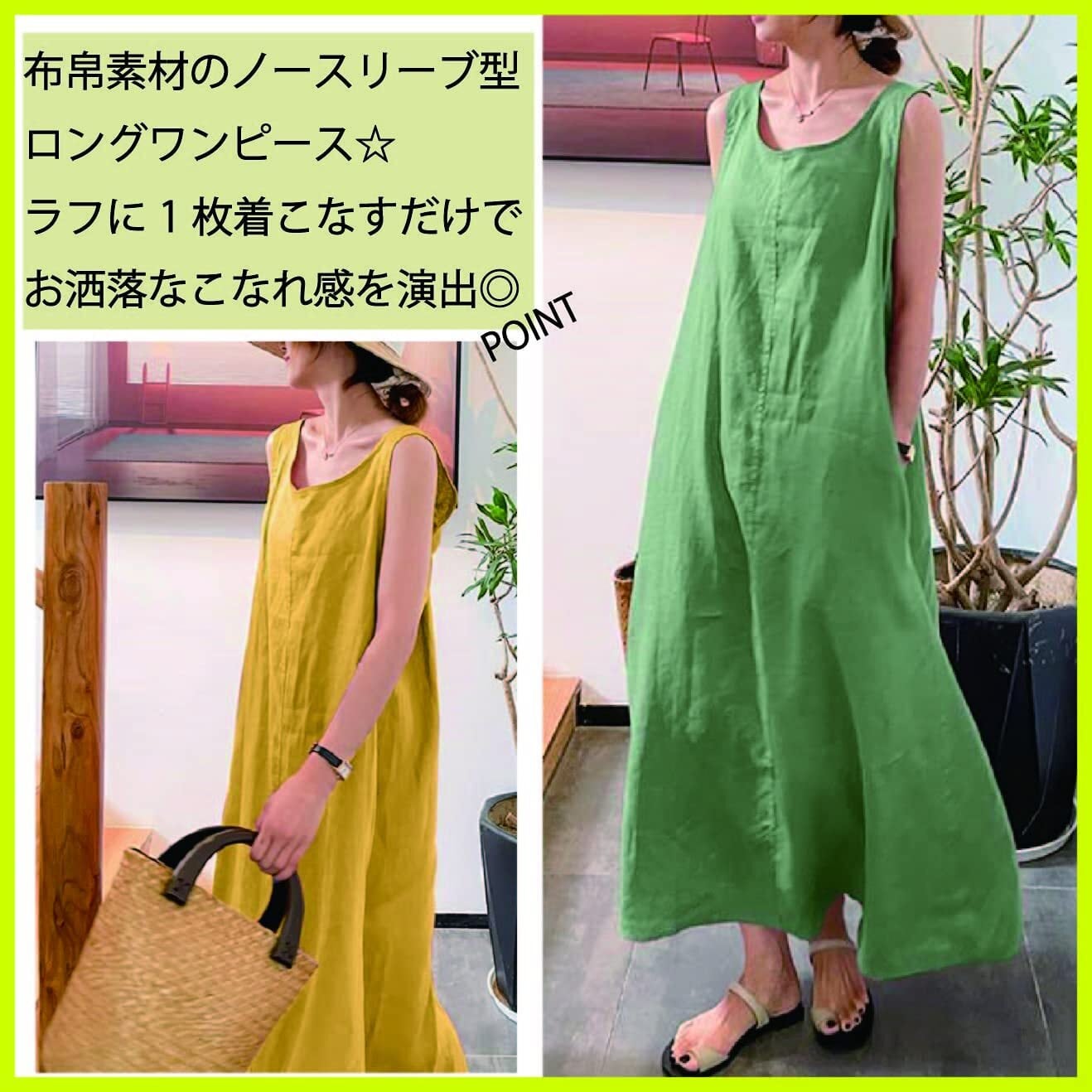 布帛素材のノースリーブ型ロングワンピースラフに1枚着こなすだけでお洒落なこなれ感を演出できます◎