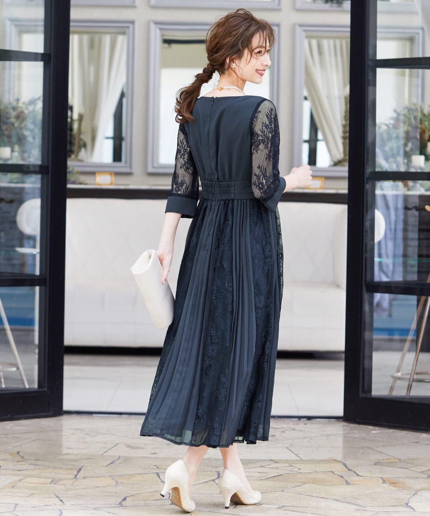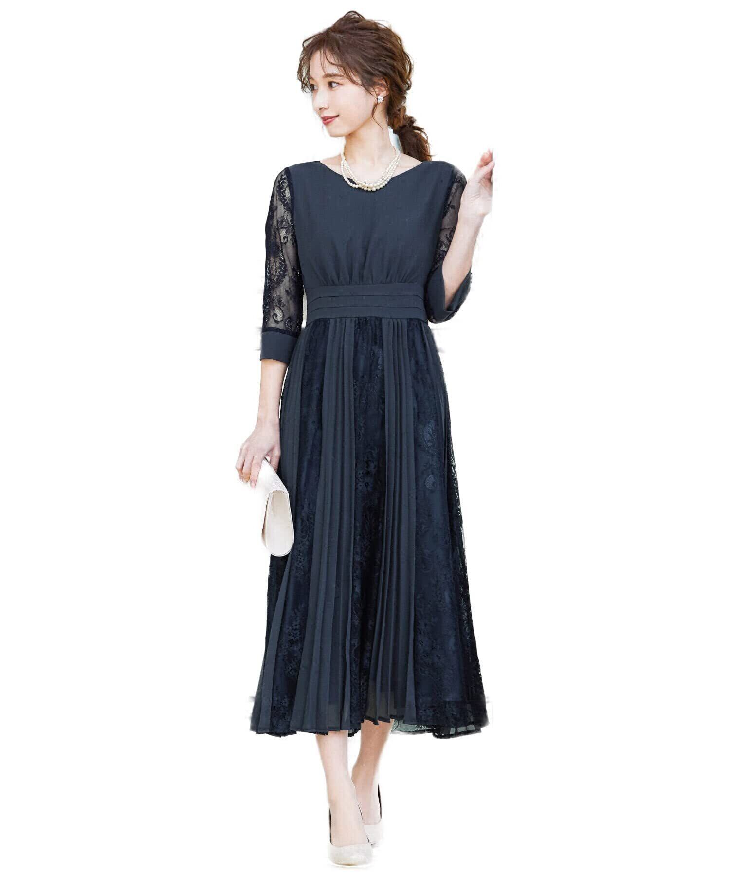 [niana] 結婚式 ワンピース パーティードレス 花柄 プリーツ チュール ロング 総レース