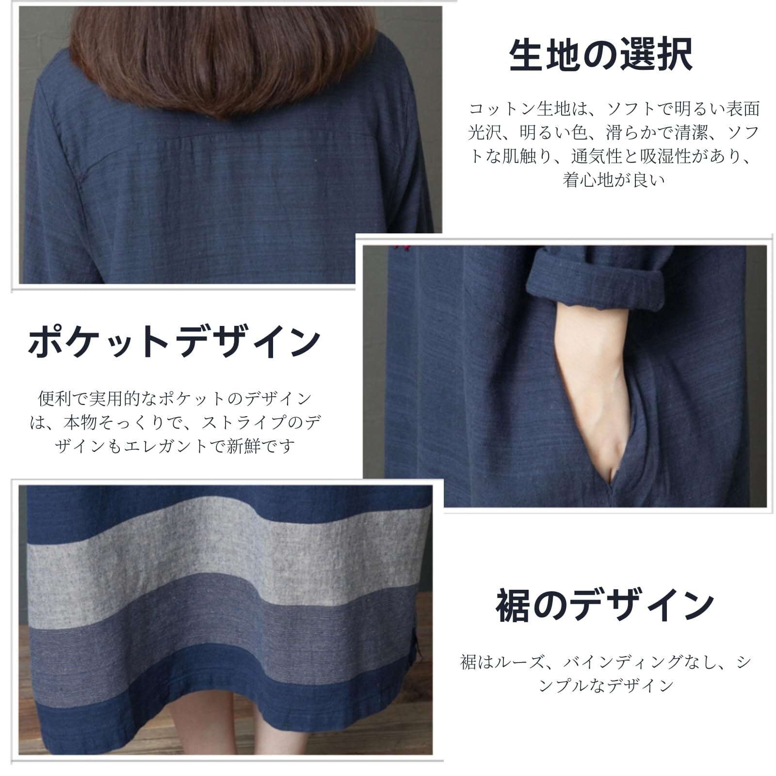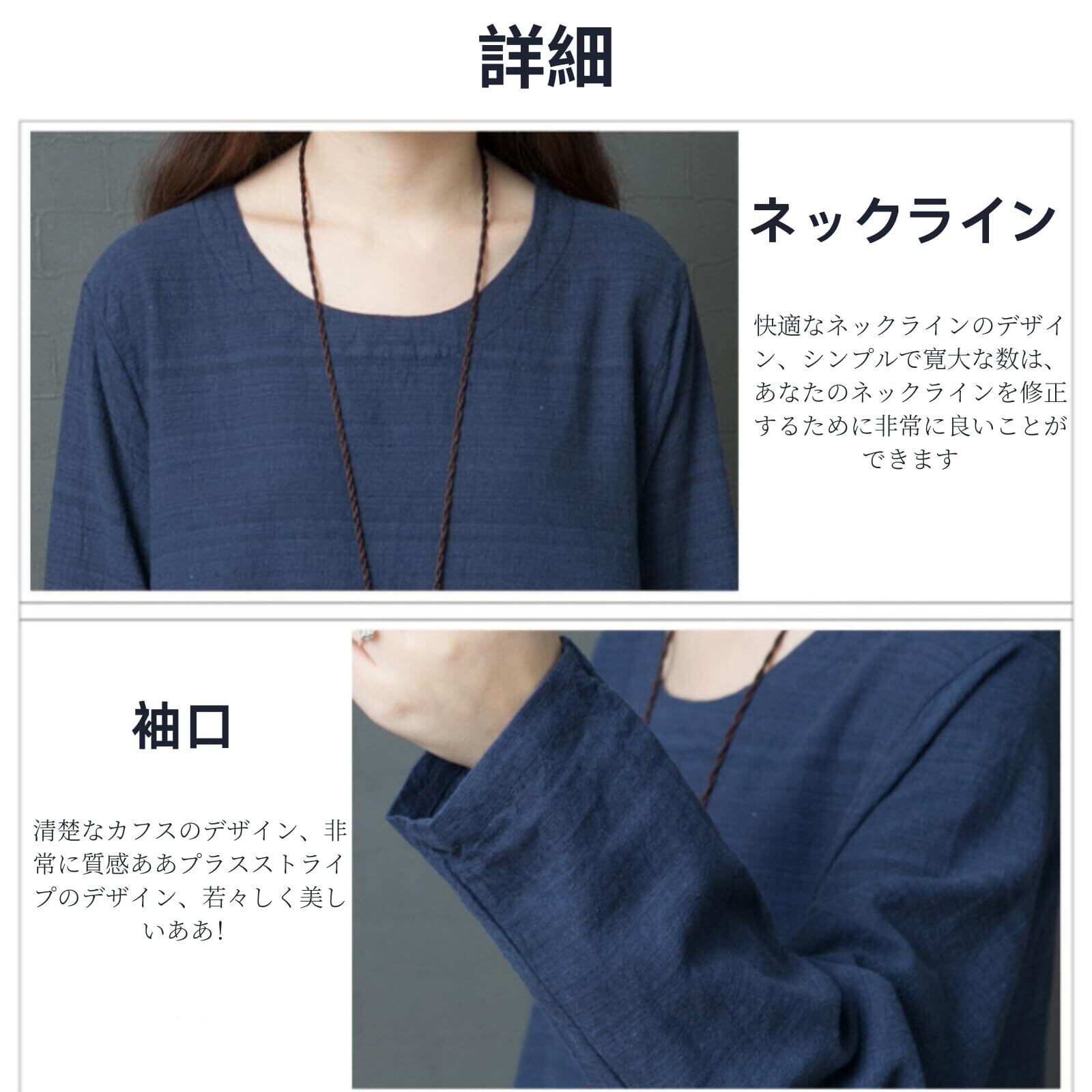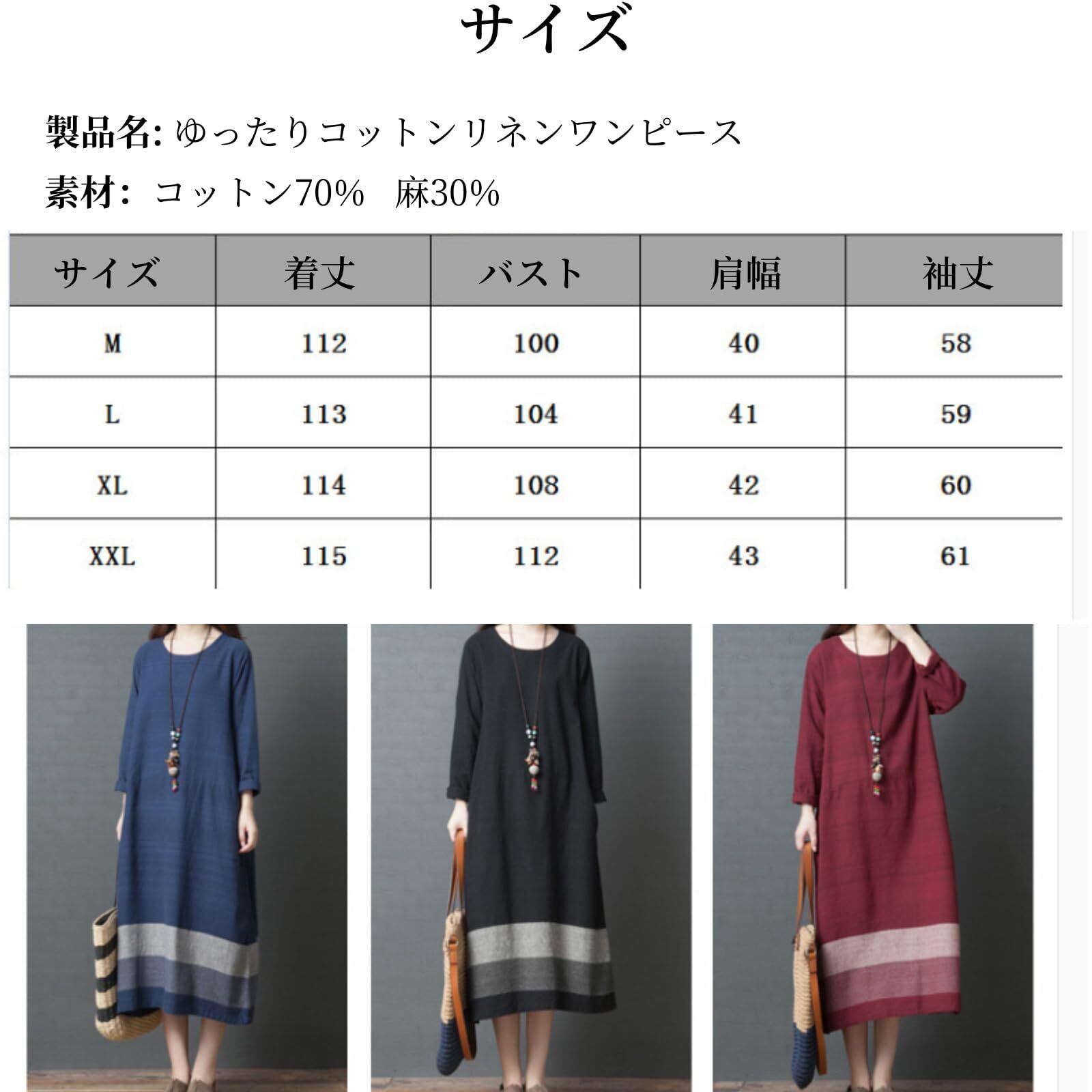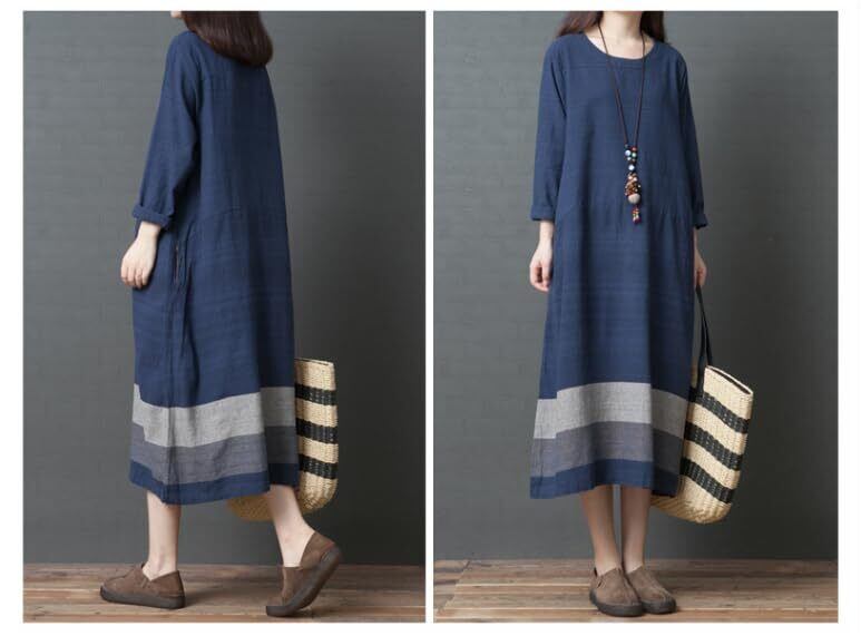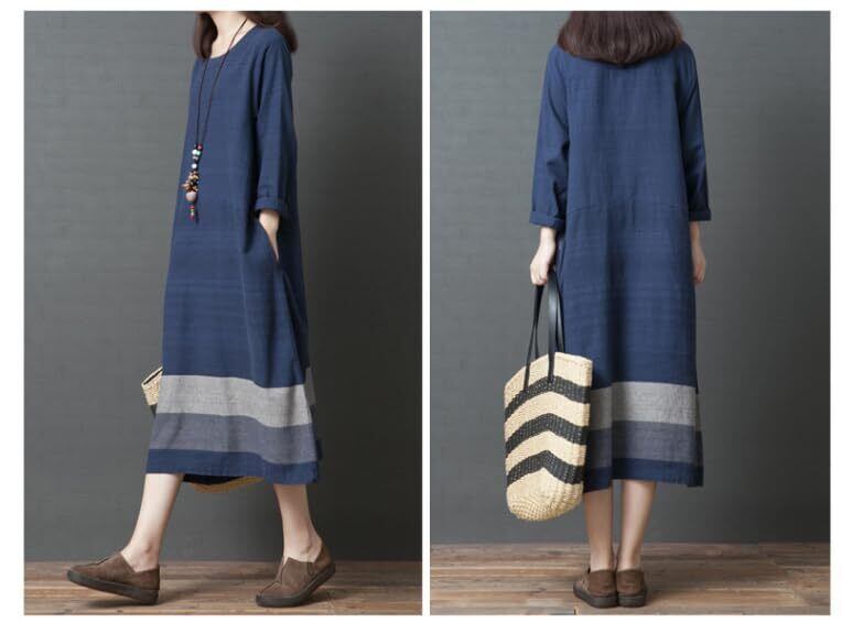 【2022最新】[JINJUDUO] ワンピース レディース 綿麻 長袖 ロングスリーブ Aライン ルーズフィット ミディ丈 カラーブロック ゆったり リラックス デザインM~2XL 着痩せ おしゃれ カジュアル オフィス 春 夏 秋 | 無意味ステッカー