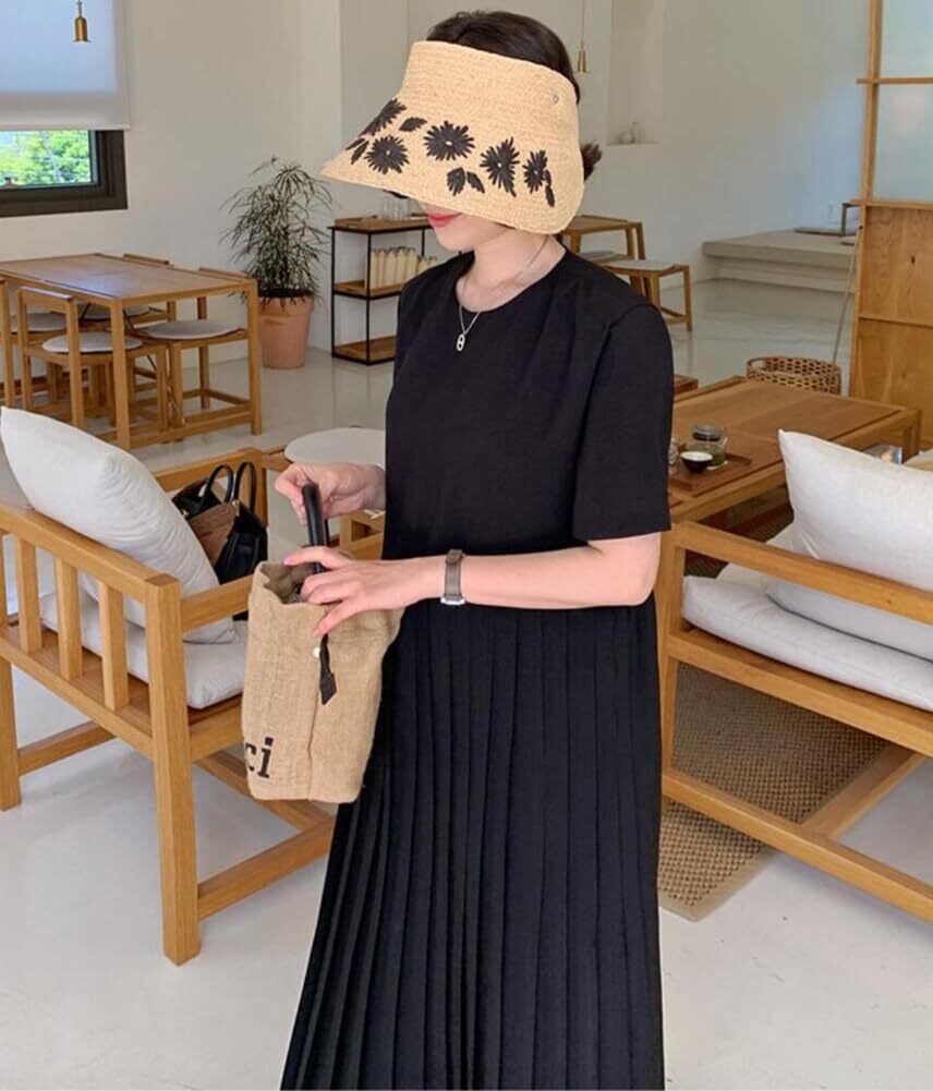 エレガントで軽やかなシフォン素材を使用したプリーツロングワンピースは、夏のワードローブに欠かせない一着です。半袖デザインで涼しげな印象を与え、無地のシンプルなスタイルは様々なシーンで活躍します。プリーツ加工が施された生地は、体の動きに合わせて優雅に揺れ、スタイリッシュな雰囲気を演出。ゆったりとしたシルエットで着痩せ効果も期待でき、体型カバーにも優れています。通勤はもちろん、カジュアルなお出かけにも最適。大きいサイズも展開しているため、様々な体型の方に対応可能です。シフォン素材特有の上品な光沢感と、プリーツデザインが織りなす洗練された雰囲気は、夏のおしゃれを一段と引き立てます。カジュアルながらも女性らしさを演出する、着回し力抜群のワンピースです。