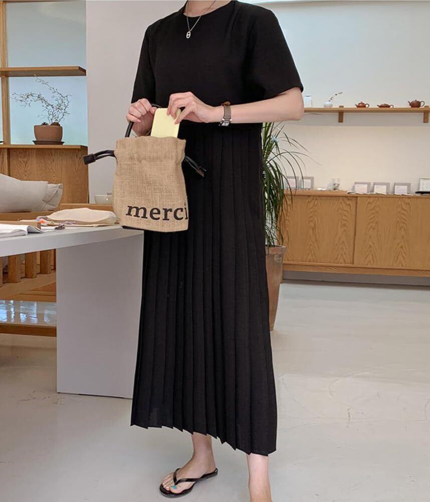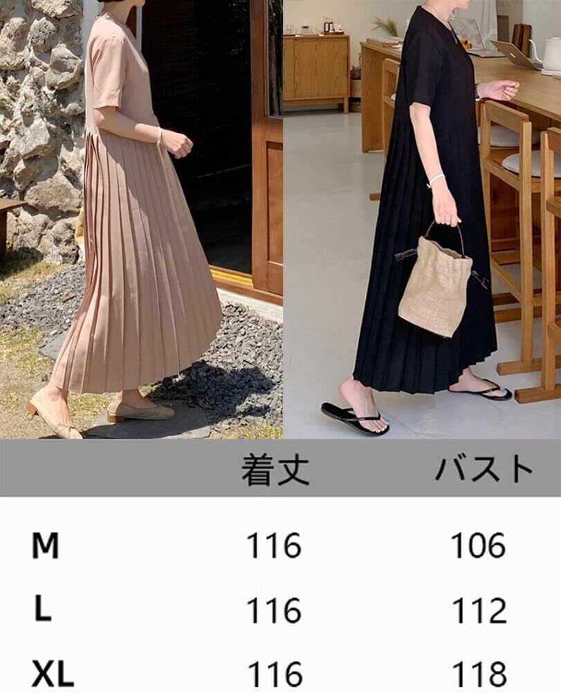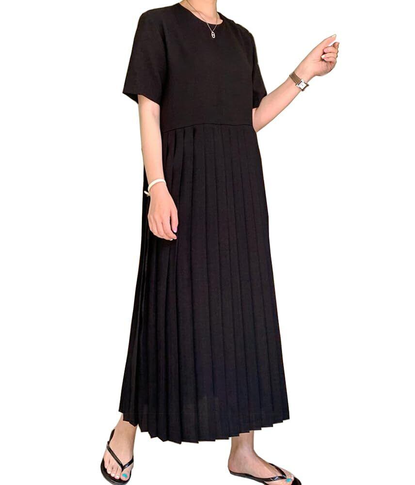 [RAGASOTA] ワンピース レディース プリーツ ロング 半袖 夏 シフォン ドレス 無地 おしゃれ 着瘦せ カジュアル 大きいサイズ 可愛い 通勤