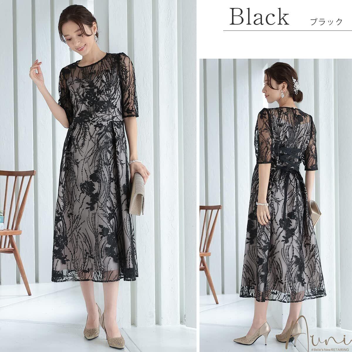 ウエストもウエストのサイズ調整が可能な編み上げ仕様です。 大人っぽい着こなしがかなうエレガントなお呼ばれドレスです。