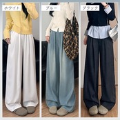 [PAFHL] ワイドパンツ デニム ジーンズ レディース 夏 春 秋 ロングパンツ ズボン ゆったり 美脚 脚長 着痩せ
