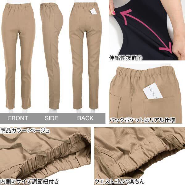 [神戸レタス] ストレッチパンツ スキニー ウエストゴム 伸びる 伸縮性 通勤 仕事服 ママ 走れる ズボン [M2390]