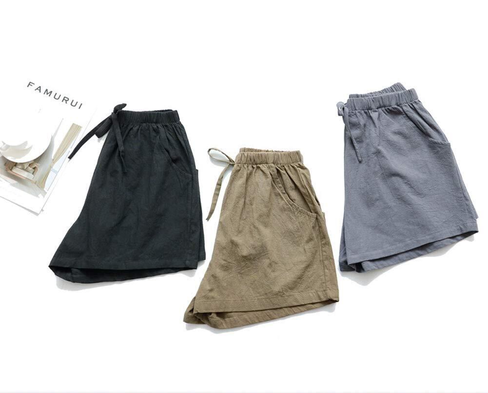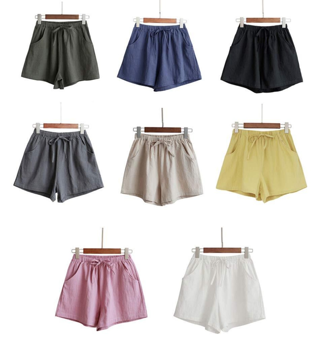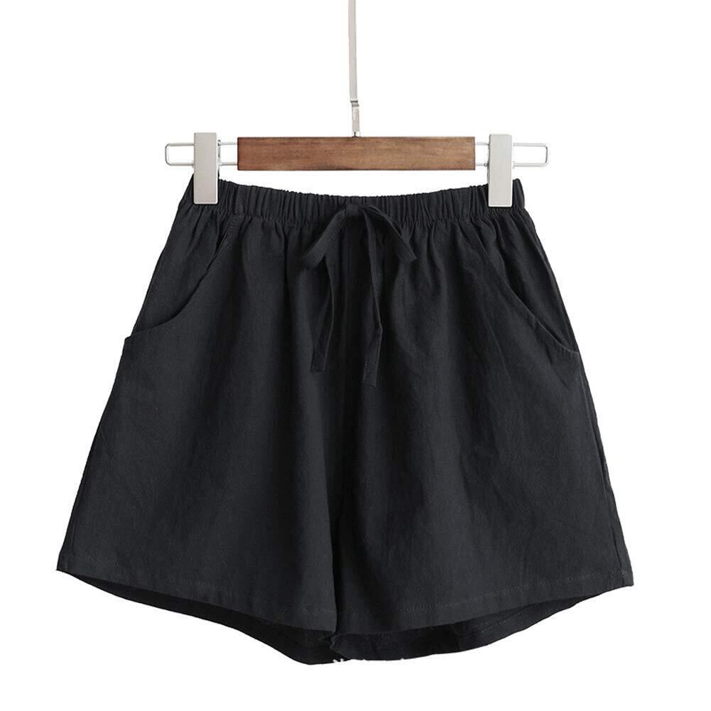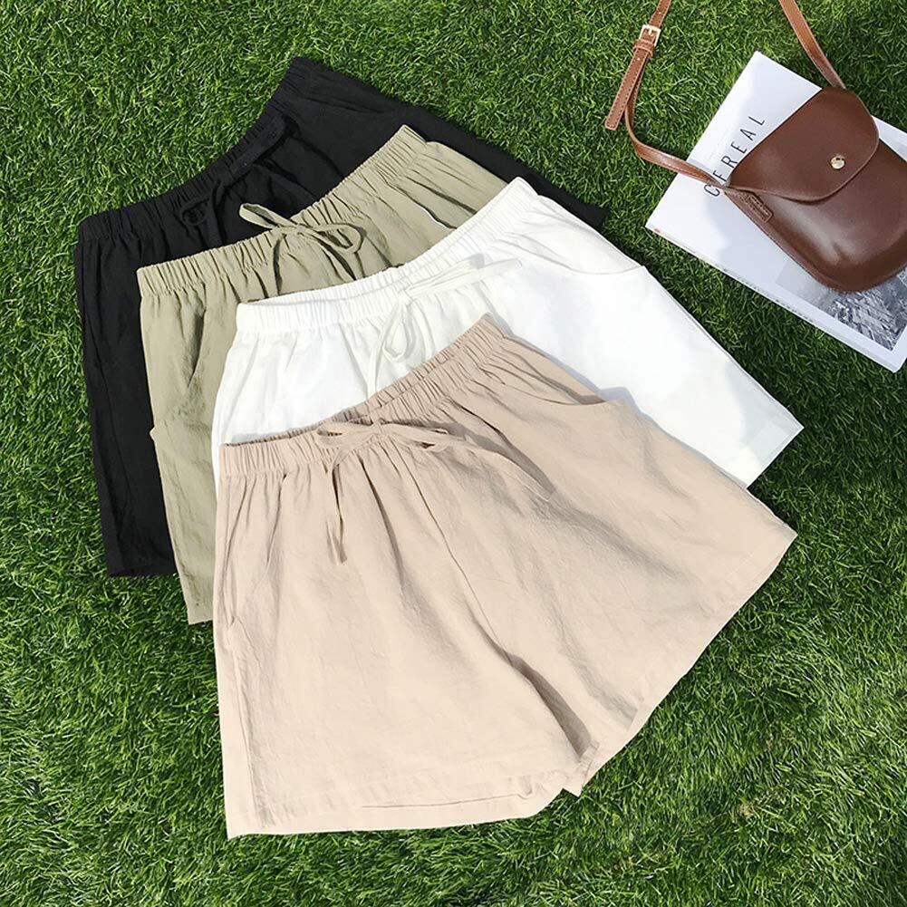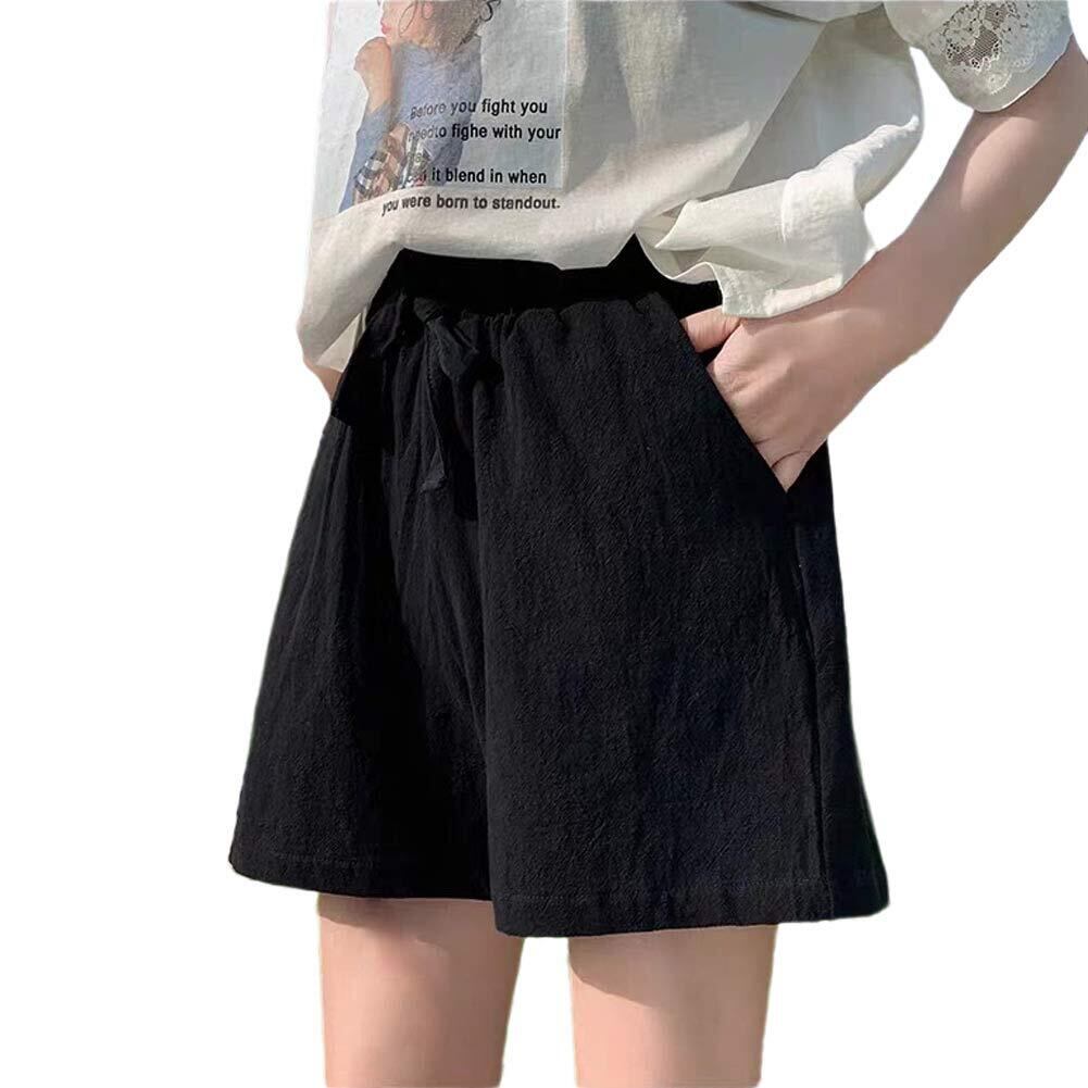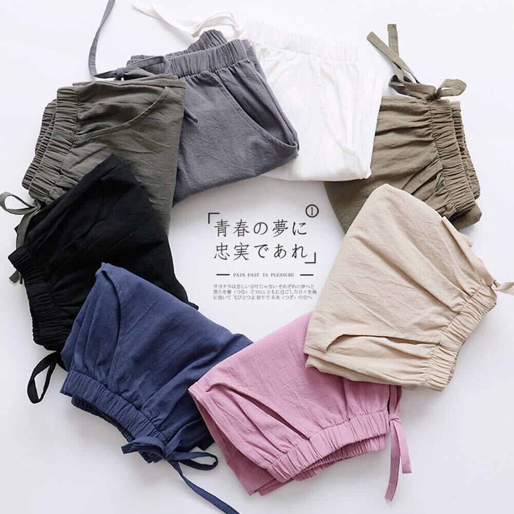 [Huaszeer] ショートパンツ 短パン レディース 綿麻 夏 ハーフパンツ 無地 純色 部屋着 ウエストゴム 普段履き