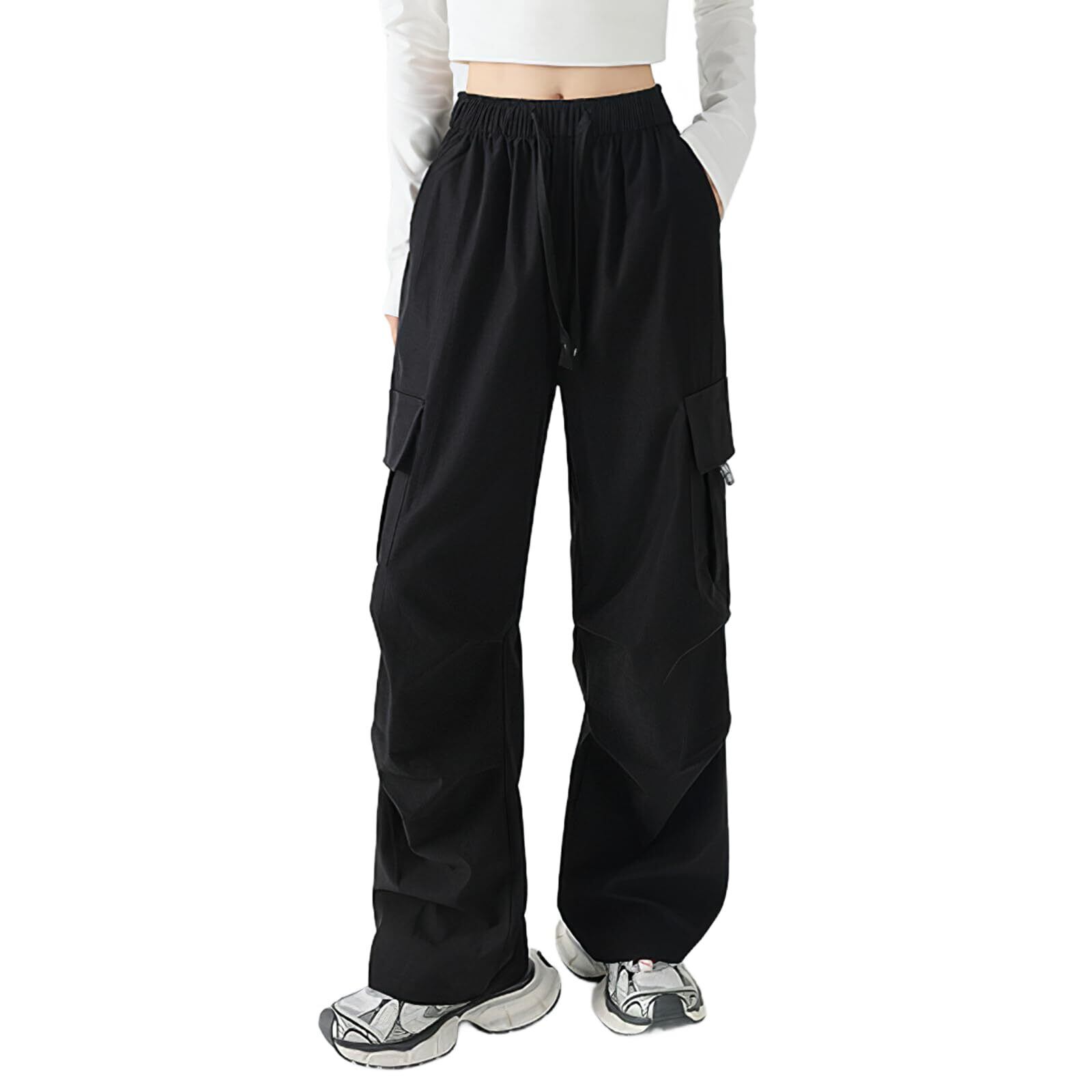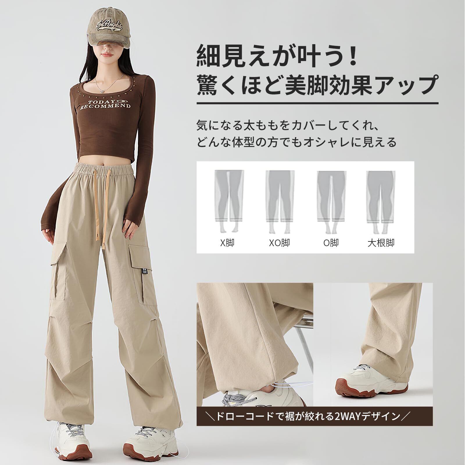 【人気商品】[MORGEN SKY] カーゴパンツ レディース ロング丈 パラシュートパンツ カジュアル ワイドパンツ ゆったり ウエストゴム 裾絞り 膝ダーツ 作業着 ダンスウェア hiphop 薄手 無地 CK375 | 無意味ステッカー