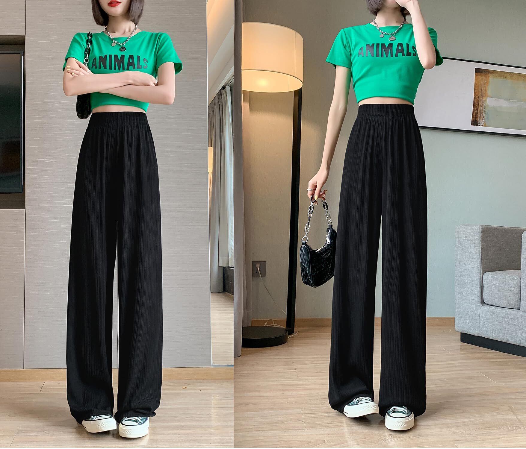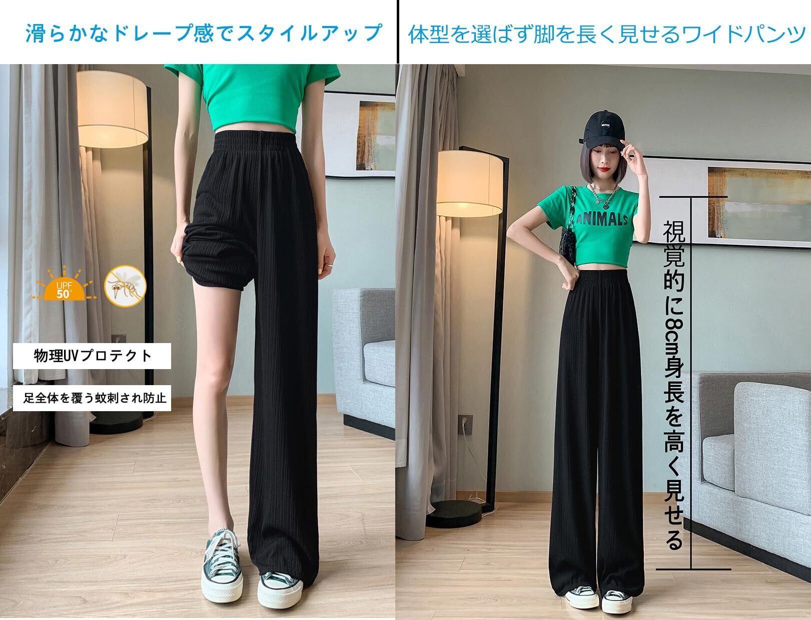 [Erikyson] レディース ワイドパンツ カジュアル ハイウエスト ロングパンツ 体型カバー 垂れ感 涼感通気 スリム効果 柔らか ゆったり 無地 美脚 春 夏 秋