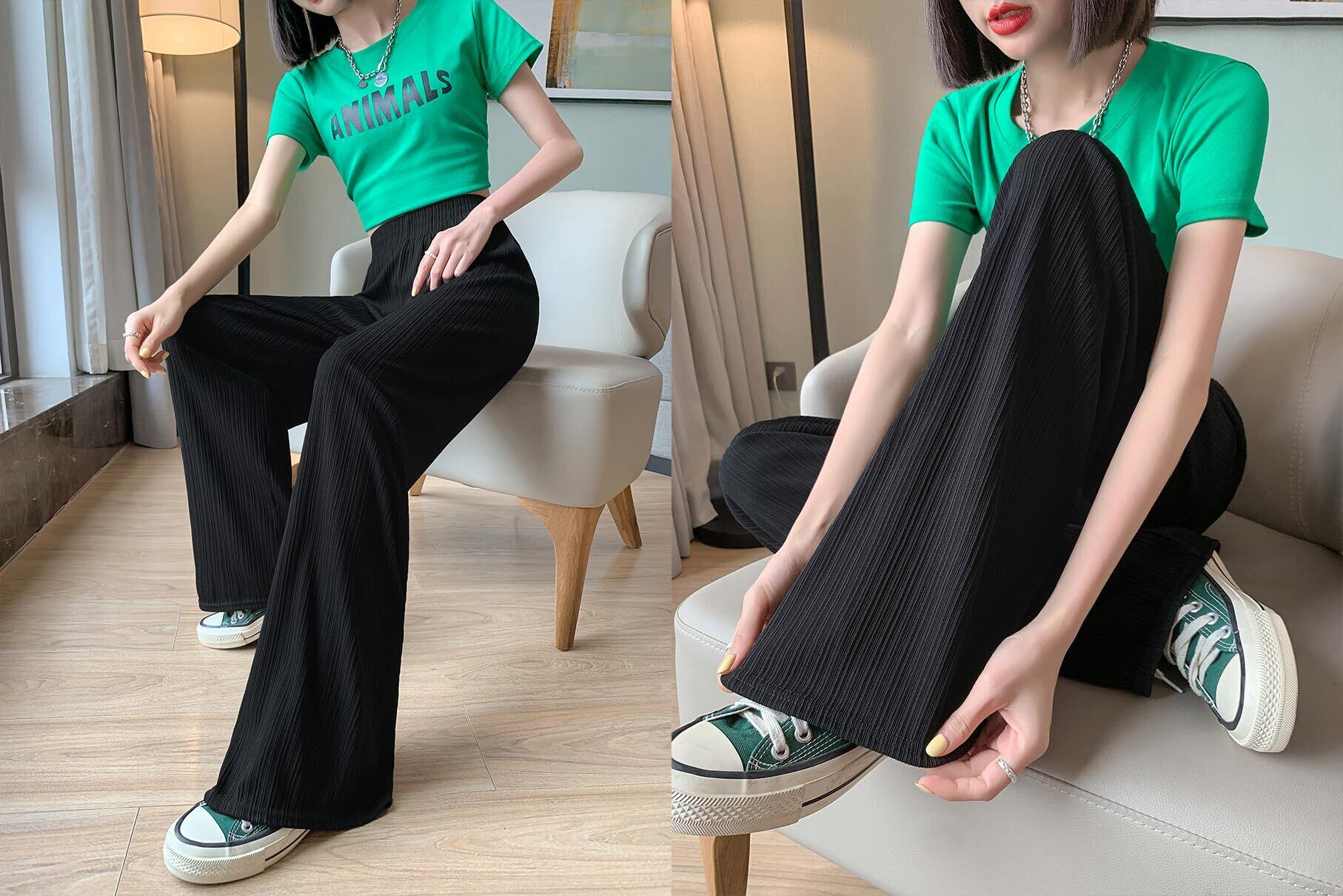 【特価セール】[Erikyson] レディース ワイドパンツ カジュアル ハイウエスト ロングパンツ 体型カバー 垂れ感 涼感通気 スリム効果 柔らか ゆったり 無地 美脚 春 夏 秋 | 無意味ステッカー
