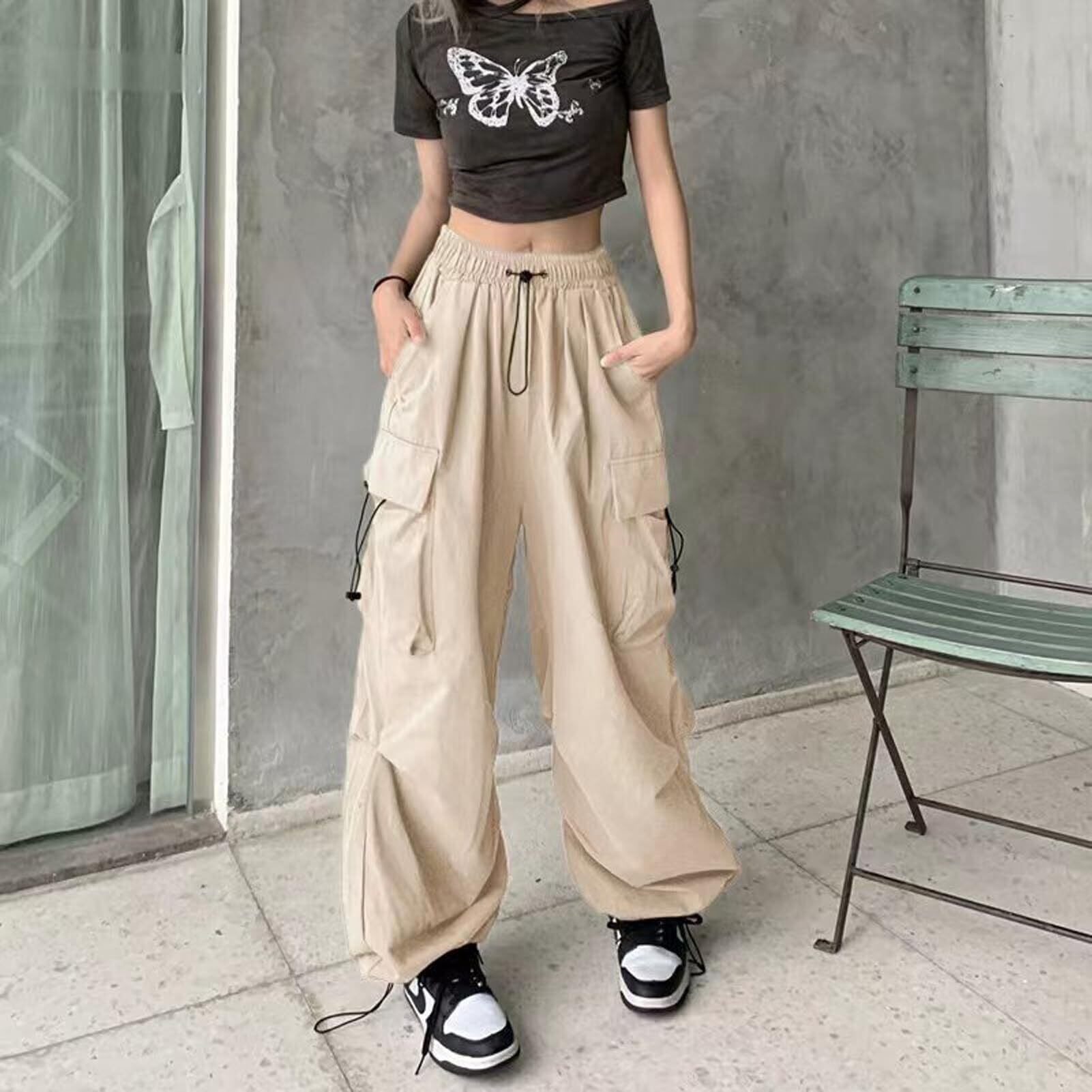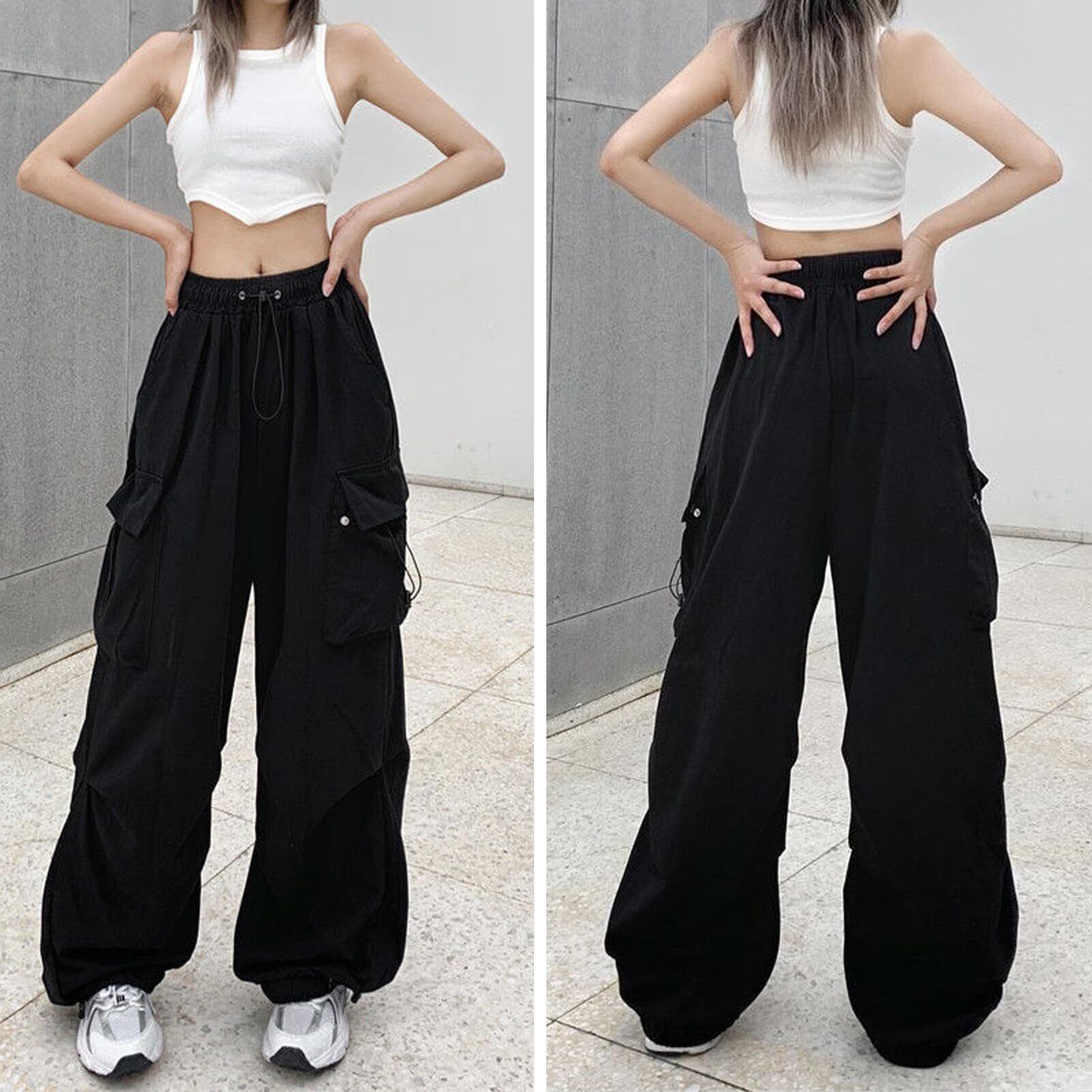 [Moerstar] カーゴパンツ レディース ロングパンツ ワークパンツ カジュアル ゆったり ズボン イージーパンツ ダンスウェア ヒップホップ ストリート系 おしゃれ 大きいサイズ 通気 薄手 無地 通勤通学 中学生 高校生 春 夏 秋