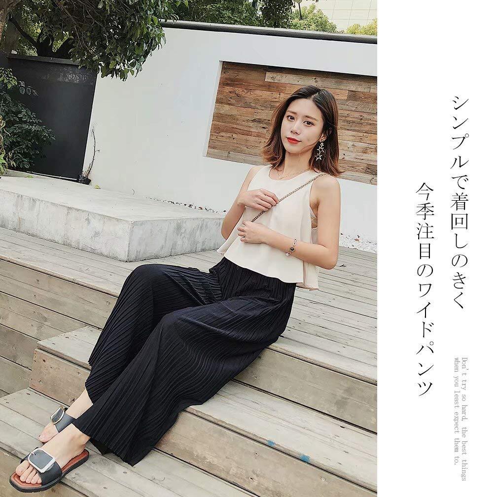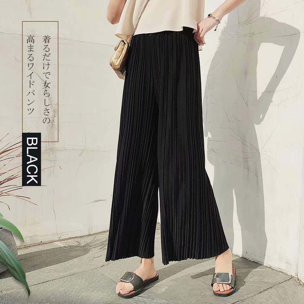 Muxuryee ワイドパンツ レディース ガウチョパンツ カジュアル ゆったり 無地 ハイウエスト ロング丈