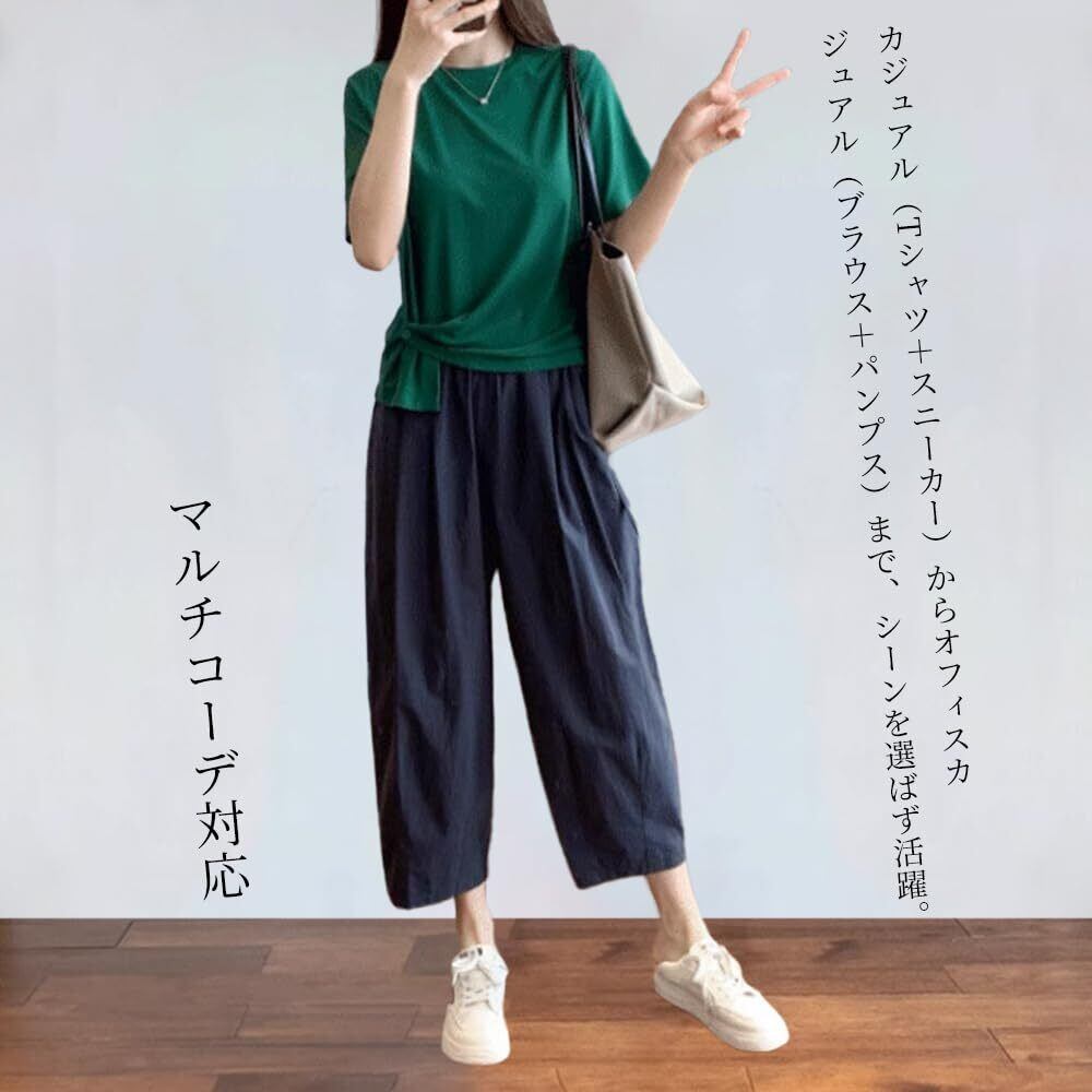【ご注意:圧縮パックに入れてお届けしますので、シワが生じる場合がございます。使用する前に、アイロンで整えて下さい。】【着瘦せクロップドパンツ】太ももゆったり、裾に向かってやや細くなるシルエットで、ヒップや太ももを隠れてスタイルをスッキル見せる。