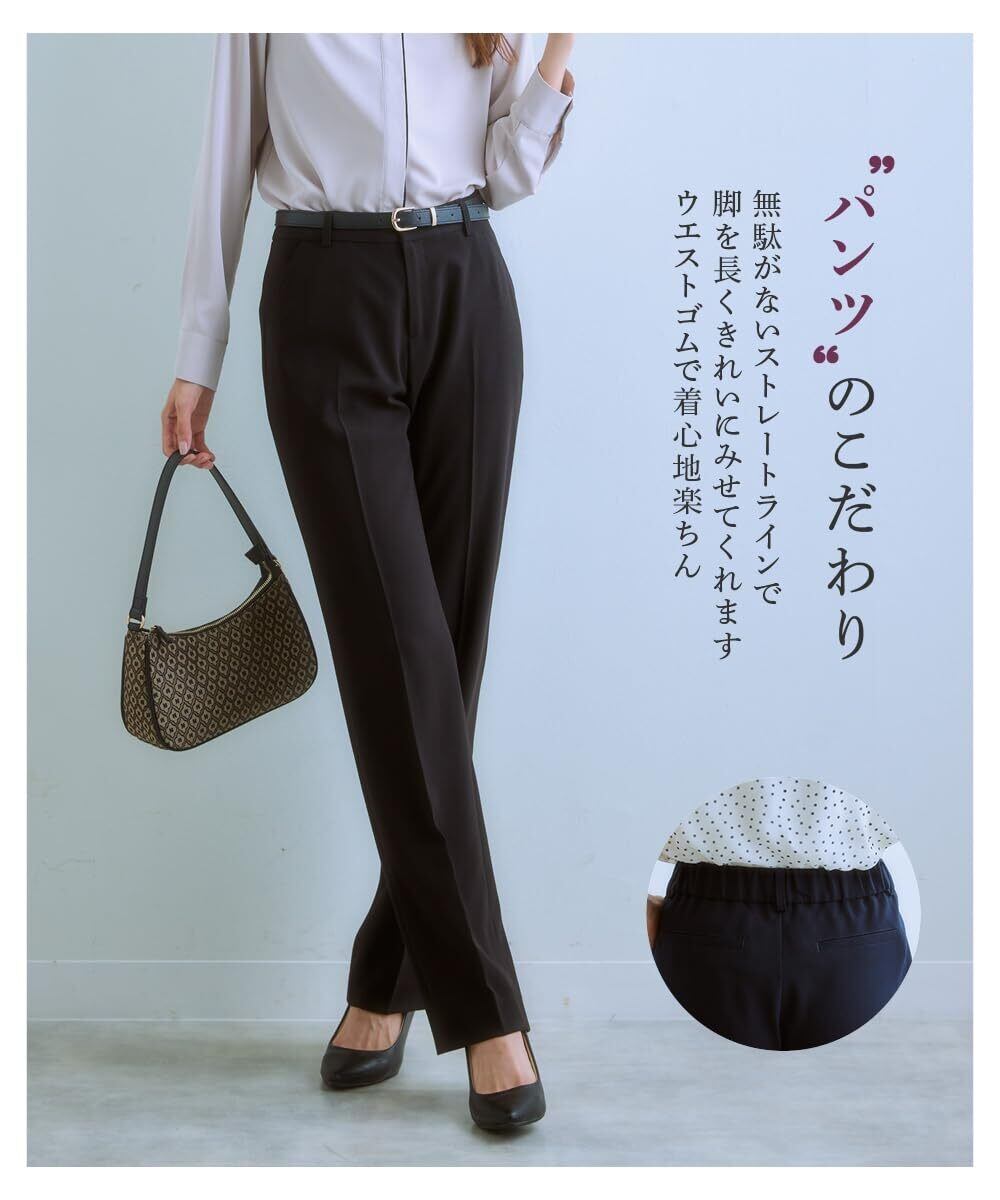 パンツのウエストは後ろゴム入りなので着心地ラクチン。しわになりにくいので長時間のご着用でもキレイが続きます