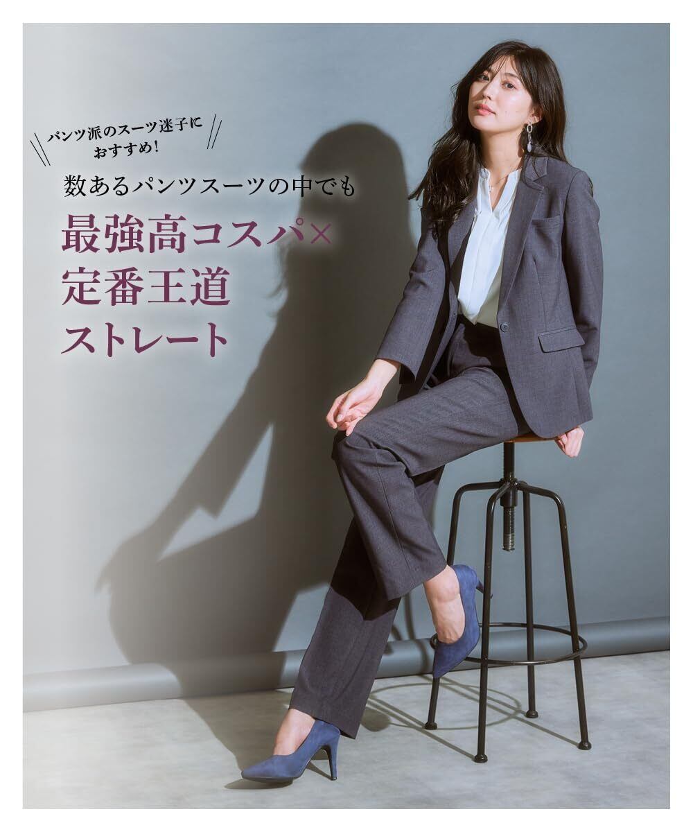 [ニッセン] パンツスーツ 【レディーススーツ】 タテヨコストレッチテーラードパンツスーツ(ジャケット+ストレートパンツ)