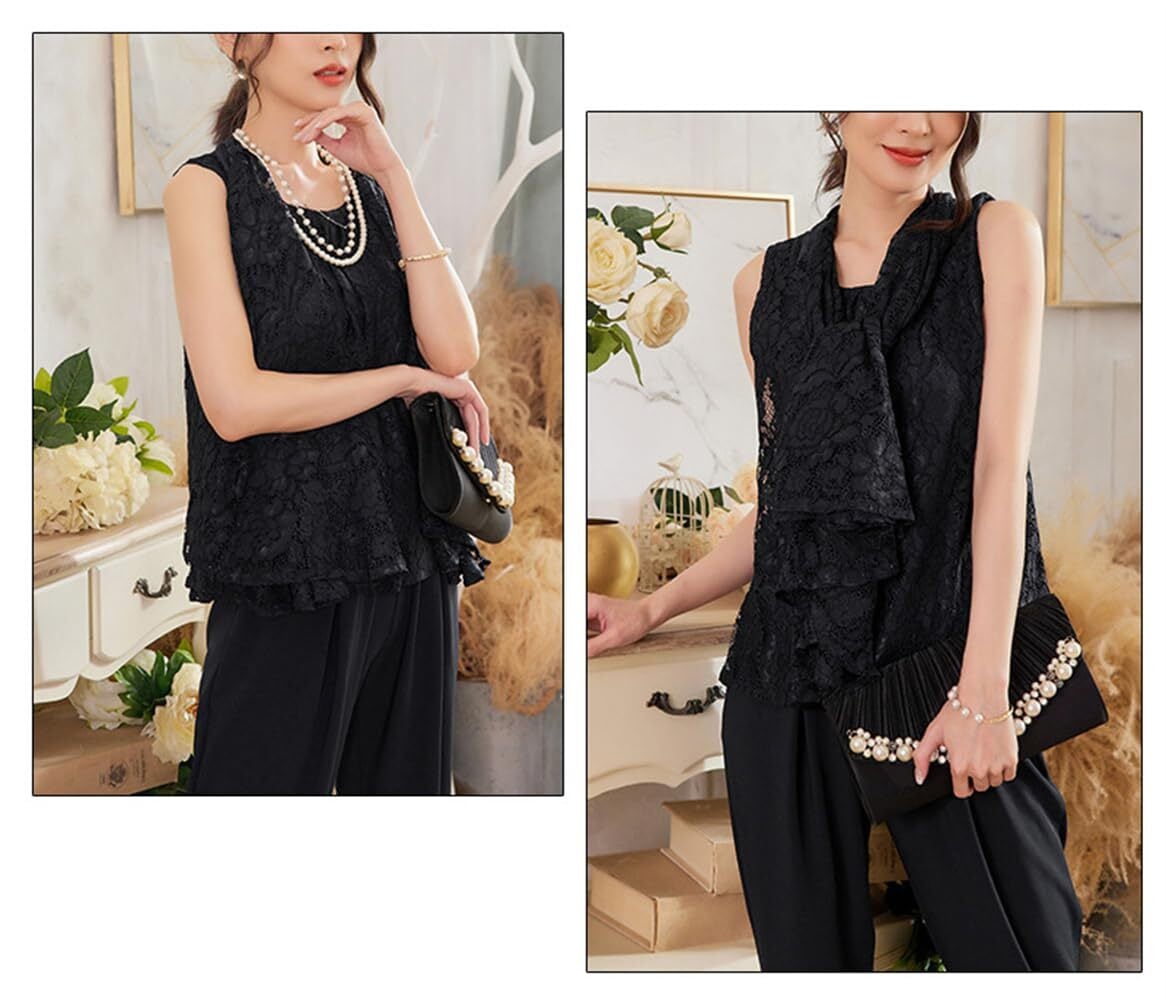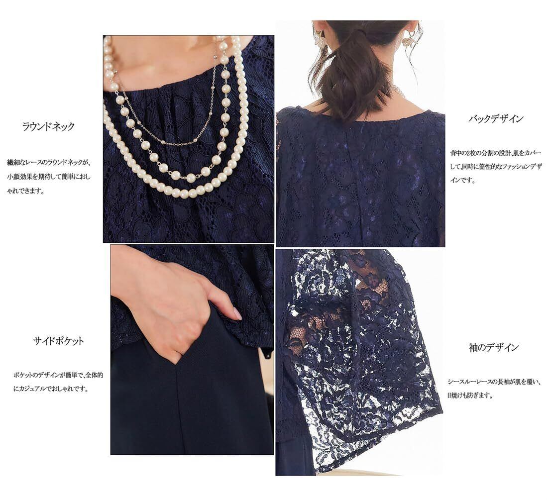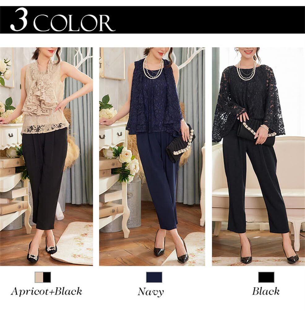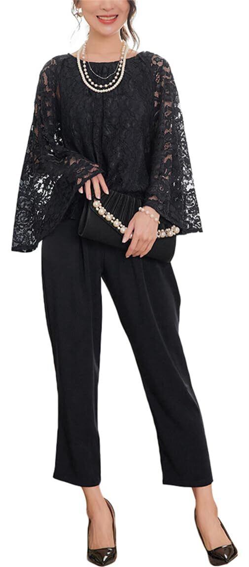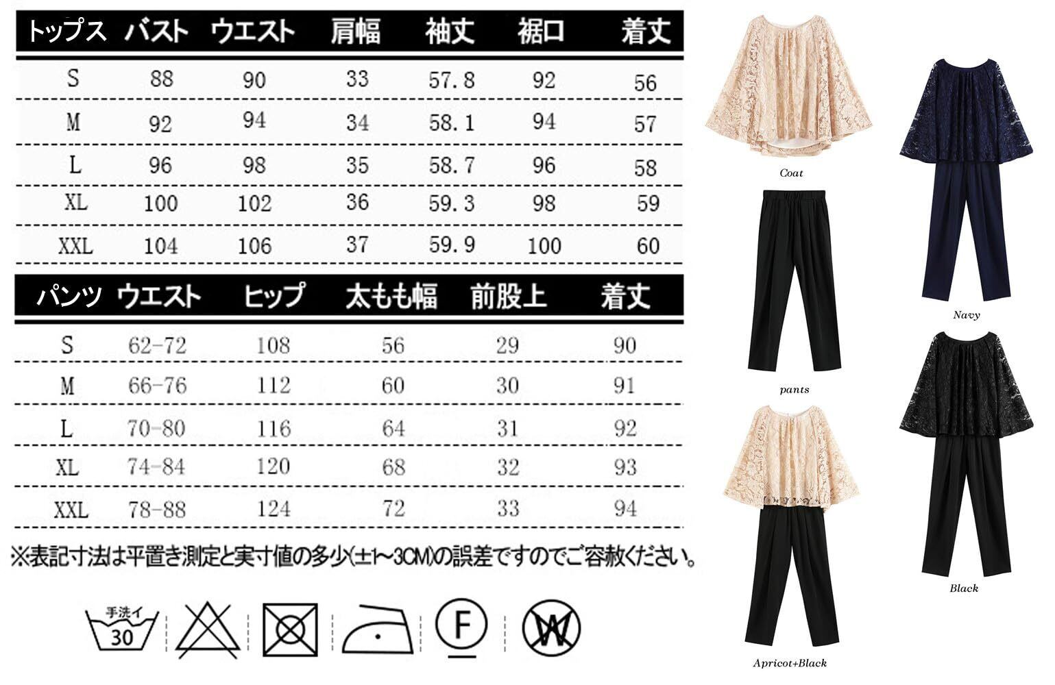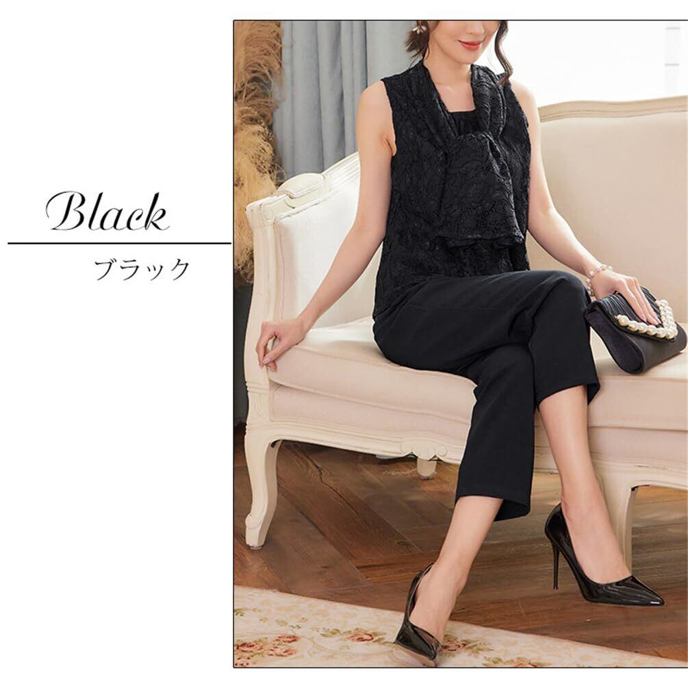 [ZHENGTU] レディース パンツスーツ セットアップ レースブラウス ケープ風 パンツドレス テーパードパンツ パーティードレス 結婚式 披露宴 お呼ばれ