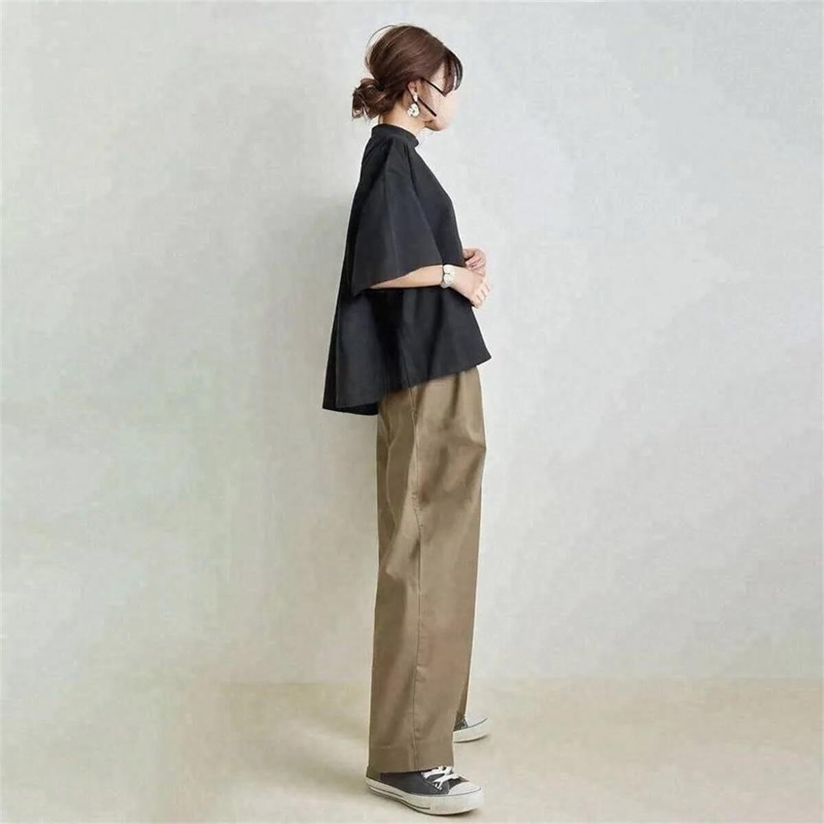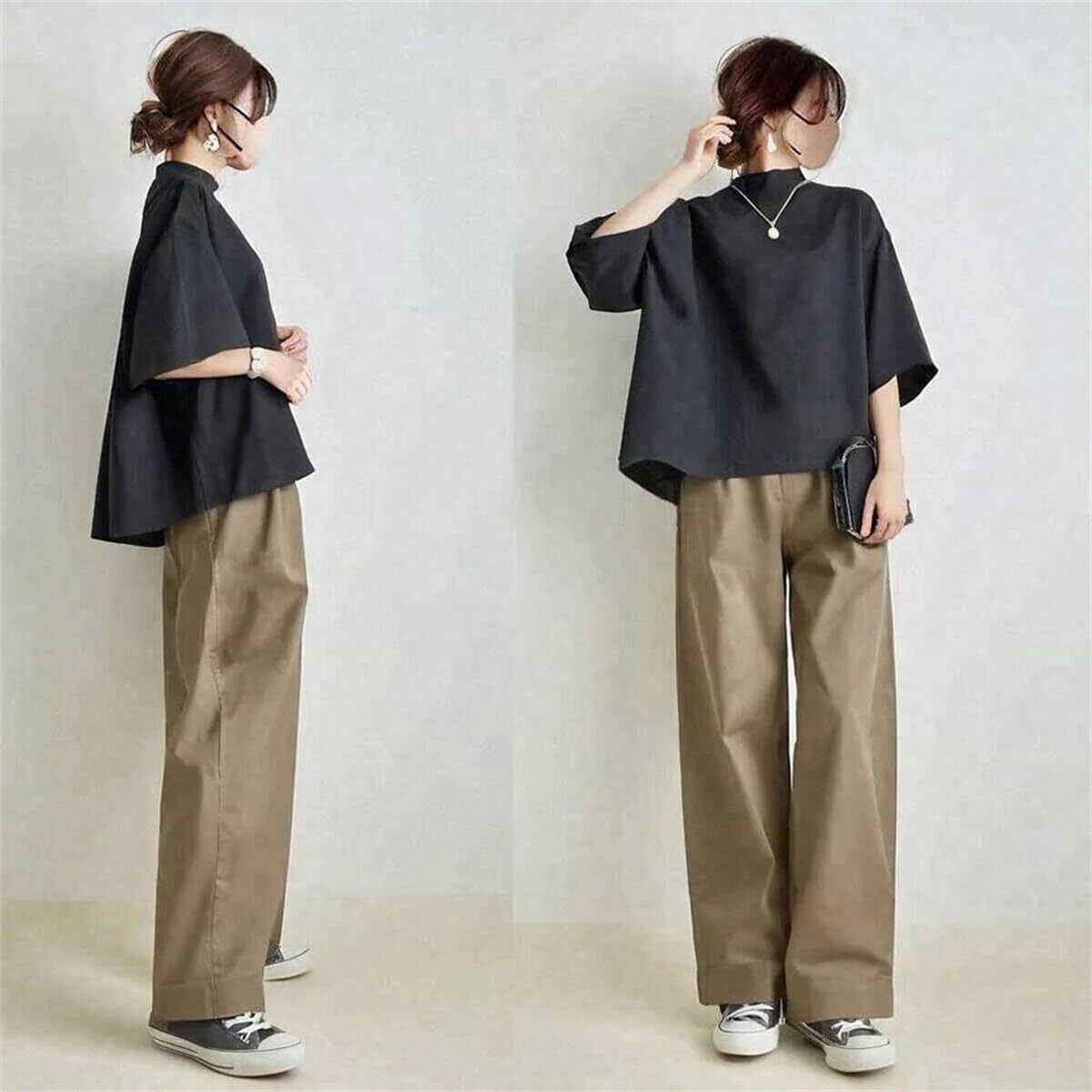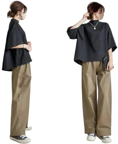 【流行の流れを参考して】定番のブラックトップスで、パンツがカーキ、グリーン、グレーとブラックなどの4色を選べ、カジュアルで女性の可愛さを最大開発、優しさの雰囲気を現れます。シンプルだけどこだわりのあるデザインで流行に左右されず、長く愛用できるのも嬉しいポイントです。