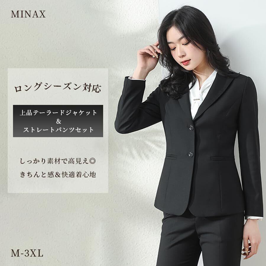 [Minax] スーツ レディース パンツスーツ ビジネス リクルート フォーマル 2点セット テーラードジャケット&ストレートパンツ 通勤 就活 面接 入学式 卒業式 春秋冬対応