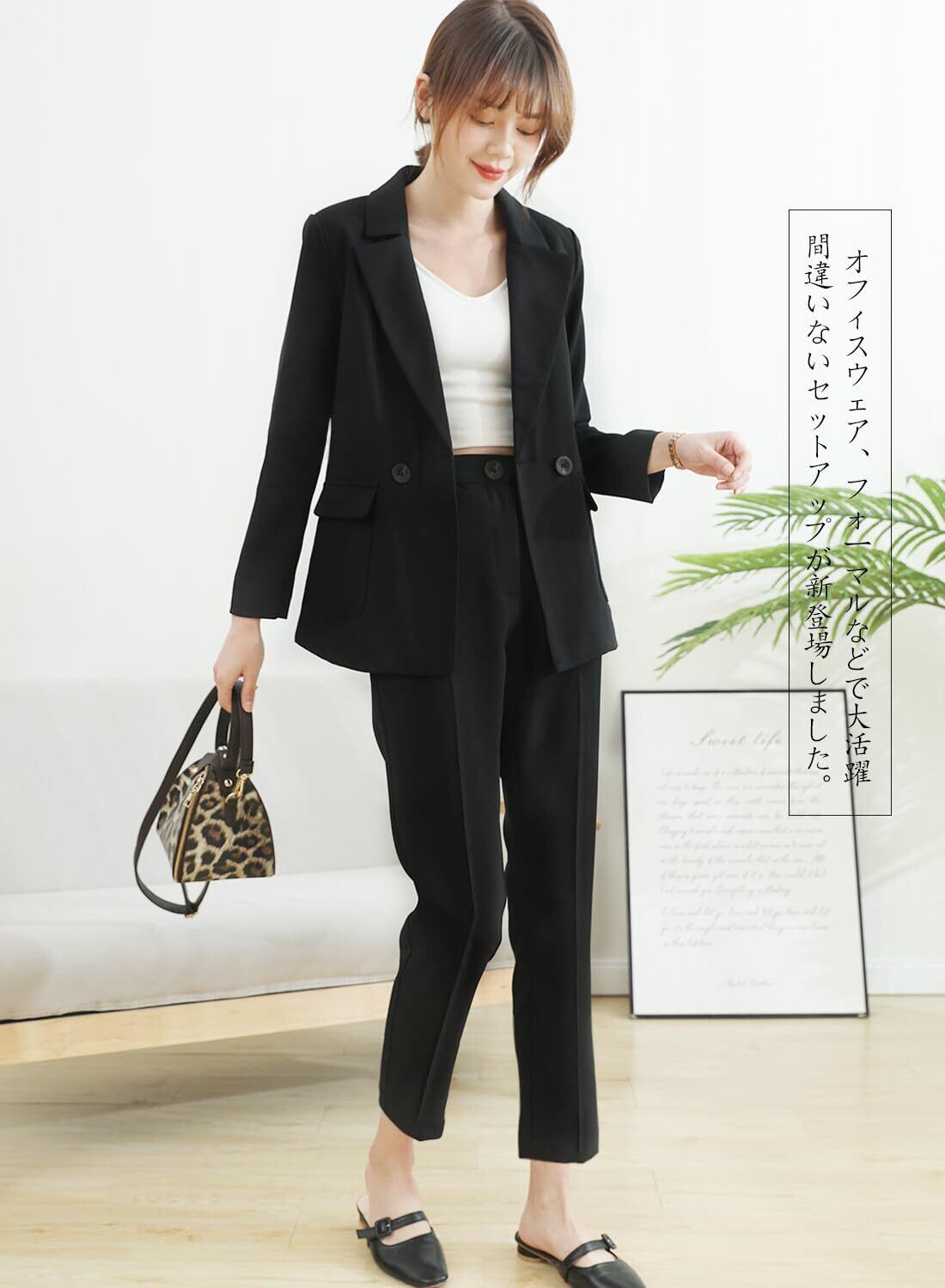 ✨洗練された質感が清潔感のイメージを演出くれます。一旦着ると、超着痩せ!超格好良い!超オーラがさす!ジャケットはすっきりした印象の1つボタンのベーシックなテーラードジャケット。脚をキレイに魅せるテーパードアンクルパンツは後にゴムが入っていて着脱が楽です。ポケットが二つあって、小さいものを入れることができます。細すぎず太過ぎないシルエットは流行に左右されませんの九分丈のパンツです。
