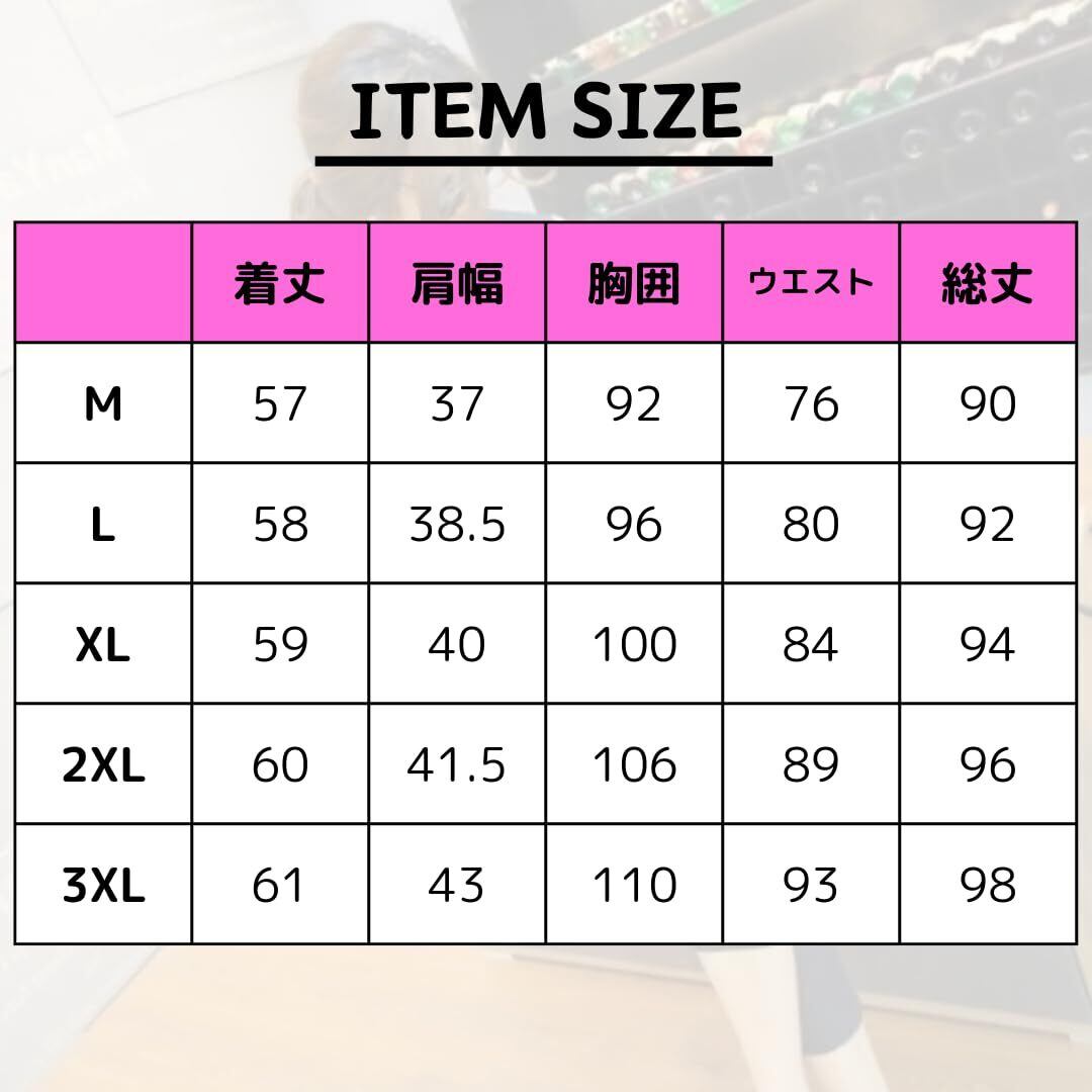 【サイズ】 Mサイズ トップス 着丈約57 肩幅約37 胸囲約92 パンツ ウエスト約76 総丈約90 Lサイズ トップス 着丈約58 肩幅約38 胸囲約96 パンツ ウエスト約80 総丈約92 XLサイズ トップス 着丈約59 肩幅約40 胸囲約100 パンツ ウエスト約84 総丈約94 2XLサイズ トップス 着丈約60 肩幅約41.5 胸囲約106 パンツ ウエスト約89 総丈約96 3XLサイズ トップス 着丈約61 肩幅約43 胸囲約110 パンツ ウエスト約93 総丈約98 ※小さめの作りになっていますのでワンサイズ大きいサイズを選んで下さい。※バックル部はプラスチックとなります。
