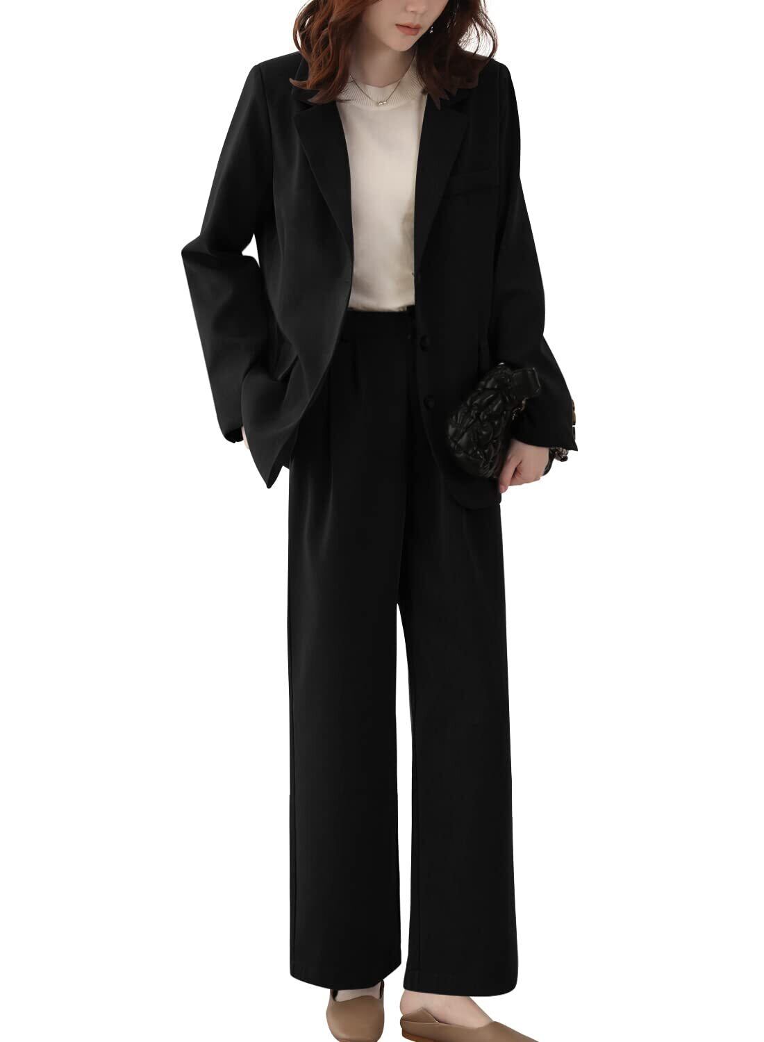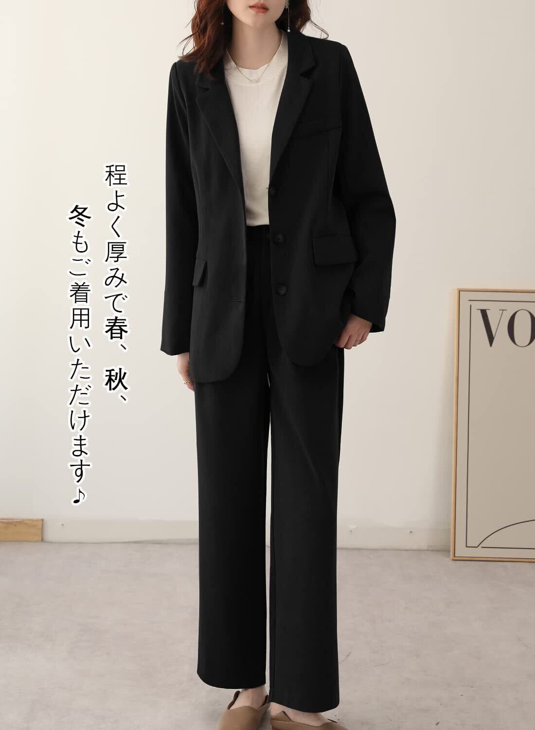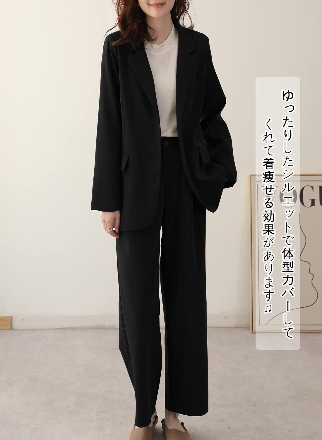 [Bidason] スーツ レディース パンツスーツ 2点セット フォーマル 知的 着痩せ ワイドパンツ アウター 大きいサイズ ゆったり ファッション お洒落 カジュアル 通勤 セットアップ 春 秋 冬