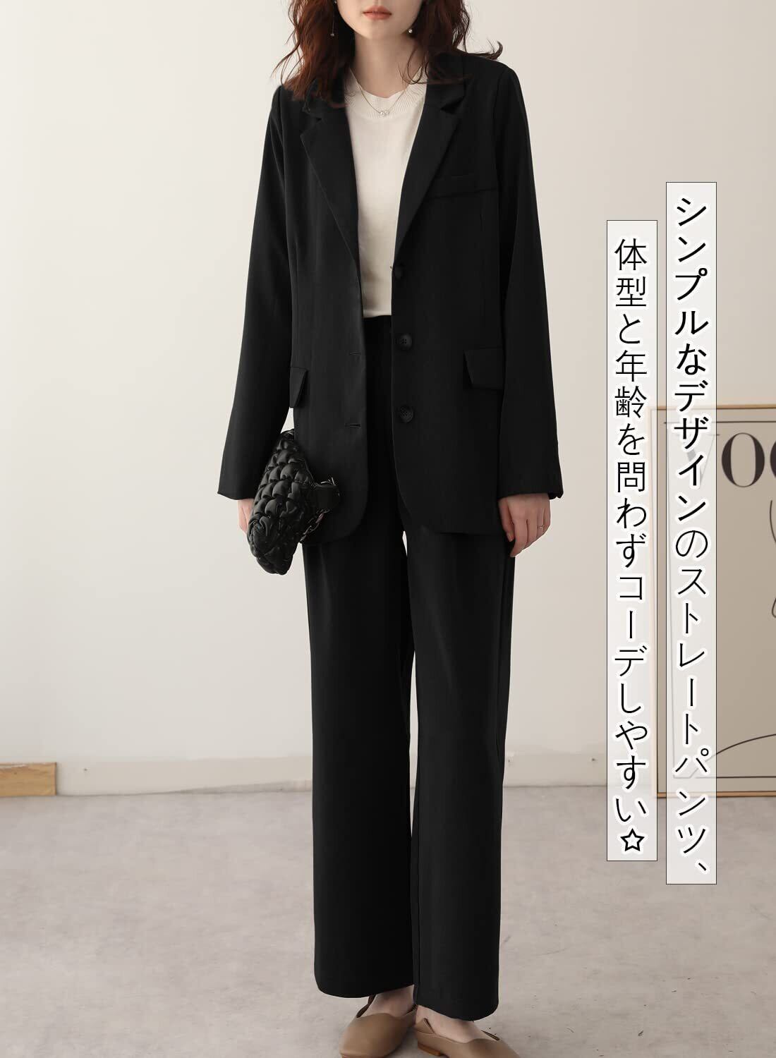 ◎こだわりの上に向こうしたテーラードの設計で、元気な顔になって、程よい格好良さも作り出します。さらりとした肌触りの裏地が付きで、着やすくてオールシーズン活躍できます。胸もとにフェークのポケット付きでお洒落でファッションです。アウターのポケット付きでスマホ、口紅、キーなどの収納に便利です。シンプルなデザインのストレートパンツ、体型と年齢を問わずコーデしやすい。ハイヒールと合わせて美脚効果満点!ワイドパンツの後ろとポケットの周辺ににタック入ってを着痩せ深えます。シンプルなデザインのストレートパンツで、体型と年齢を問わずコーデしやすい。ハイヒールと合わせて美脚効果満点です。