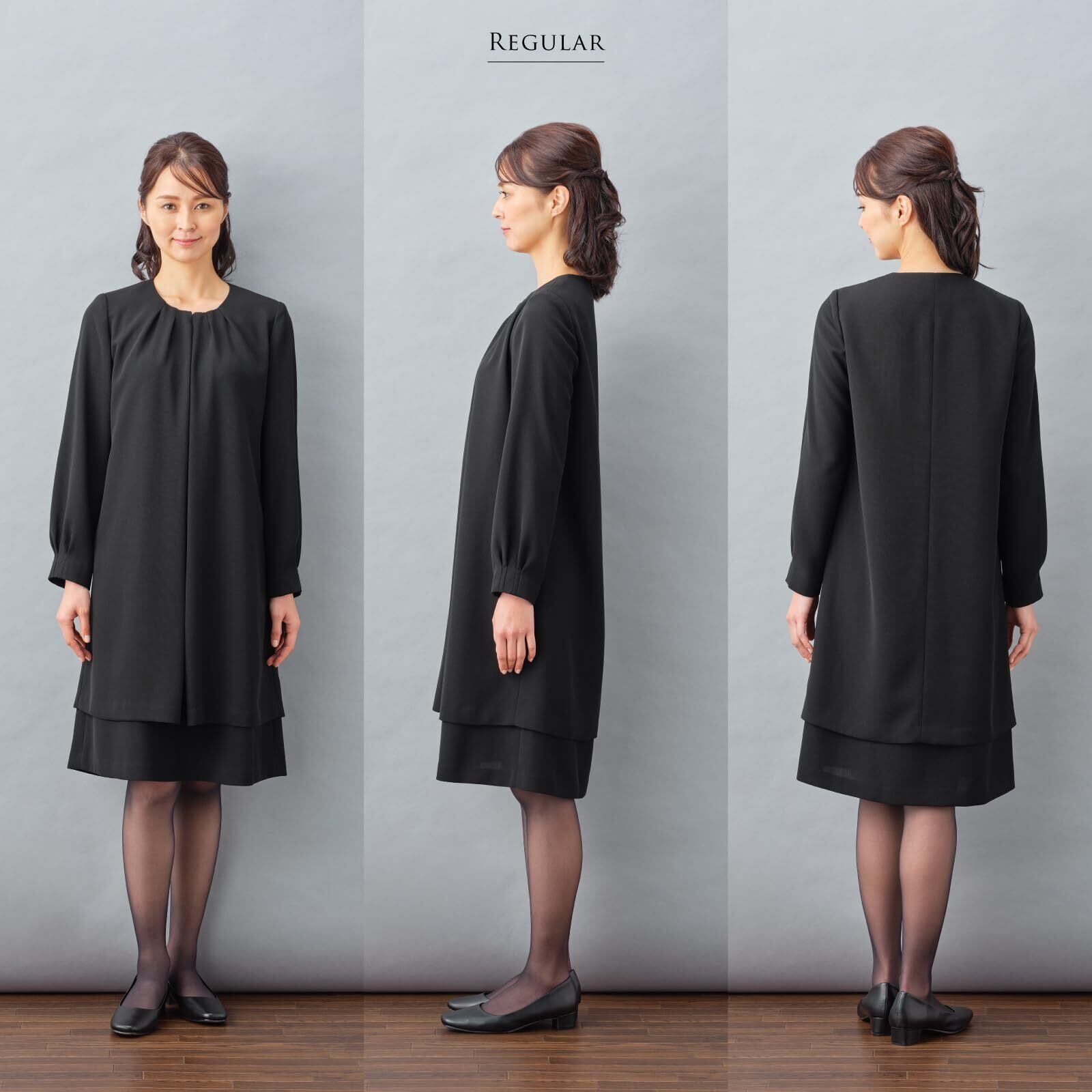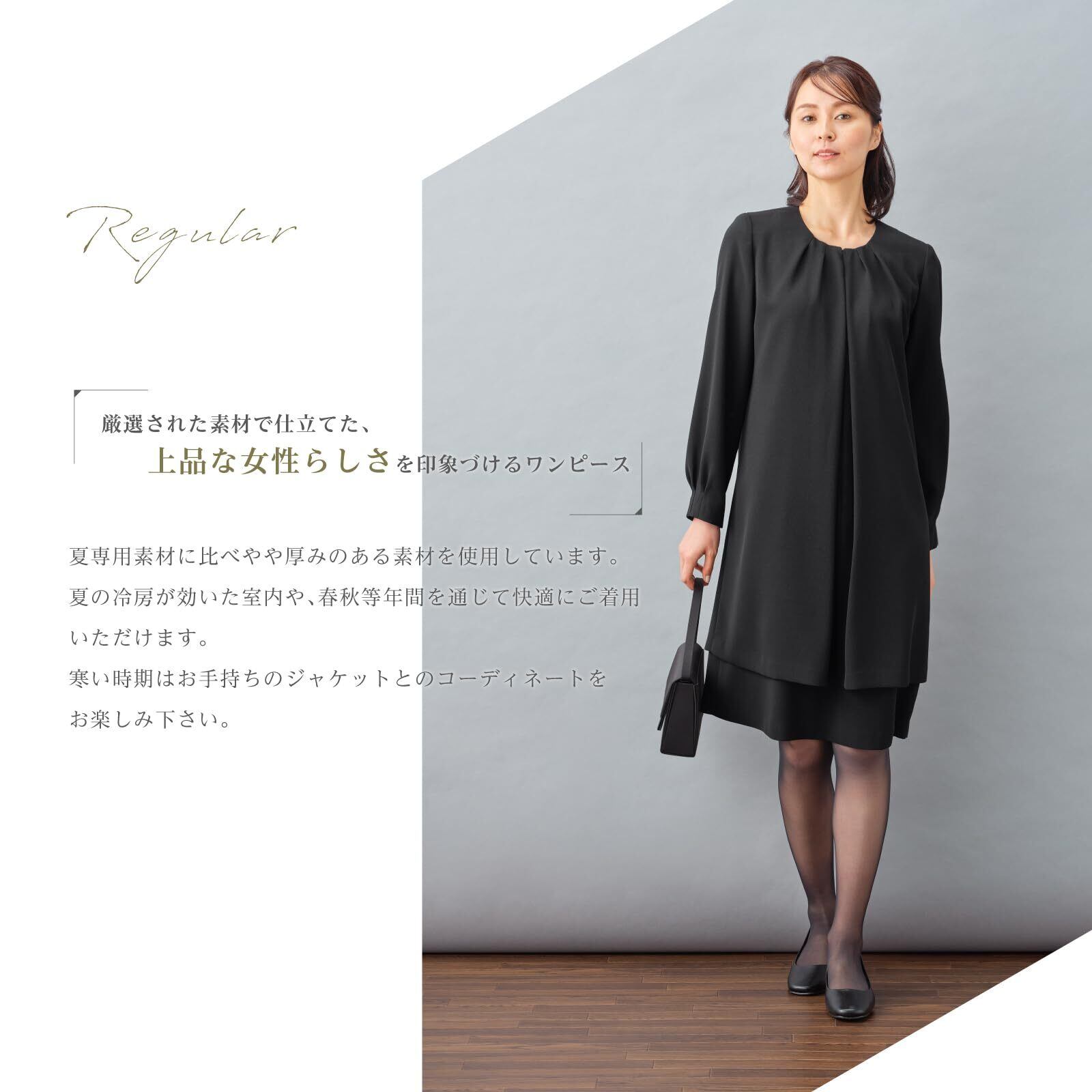 [マーガレット ゴールド] m322 喪服 ブラックフォーマル レディース ワンピース 前開き ロング丈 レギュラー丈 スリーシーズン 礼服 洗濯可能