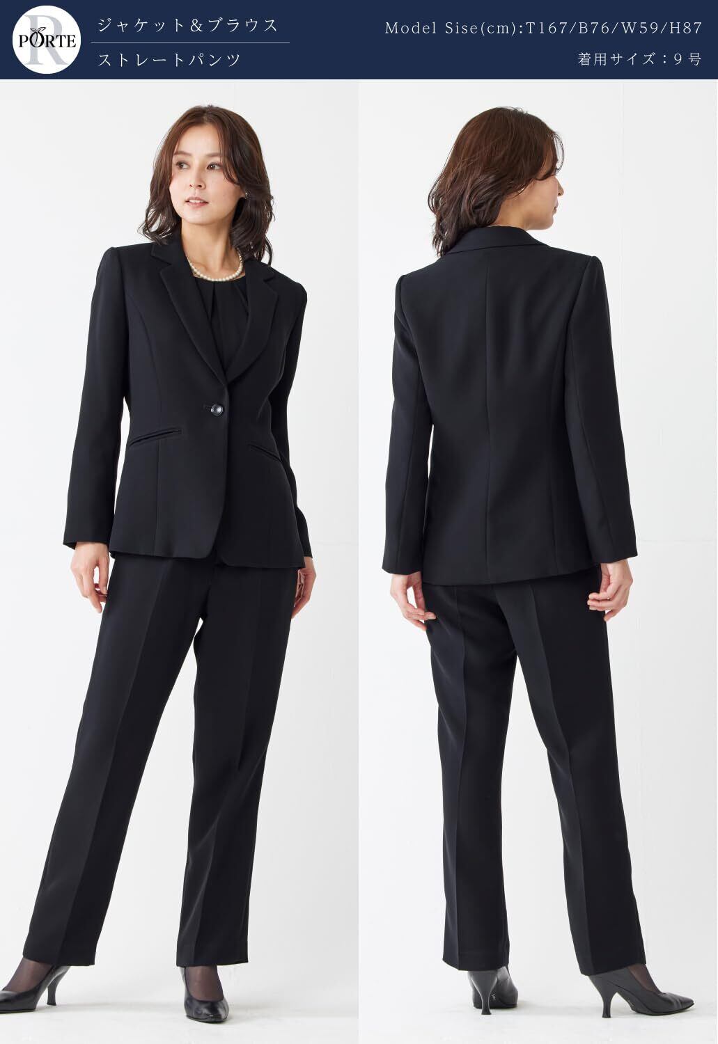 [レジーナポルテ] 喪服 礼服 ブラックフォーマル レディース パンツスーツ ゆったり 体型カバー 洗える ブラウス