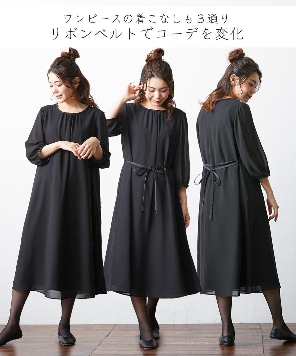 お通夜やお葬式だけの喪服ではなく、結婚式・参観日・卒業式などすべてのフォーマルシーンに対応できるワンピースです。
