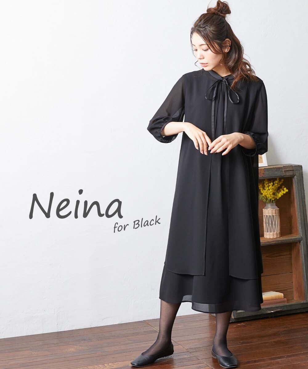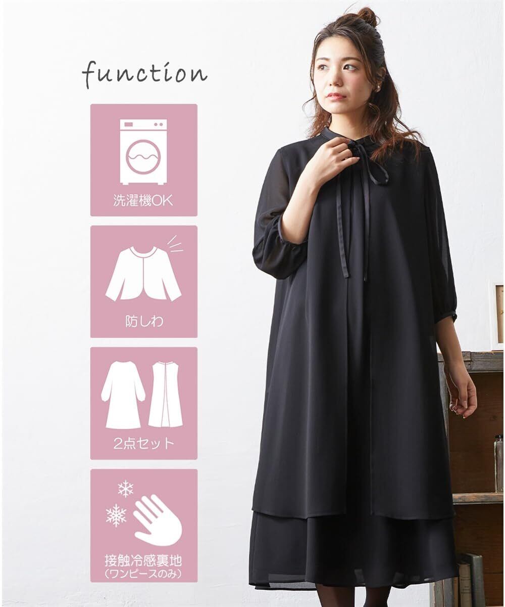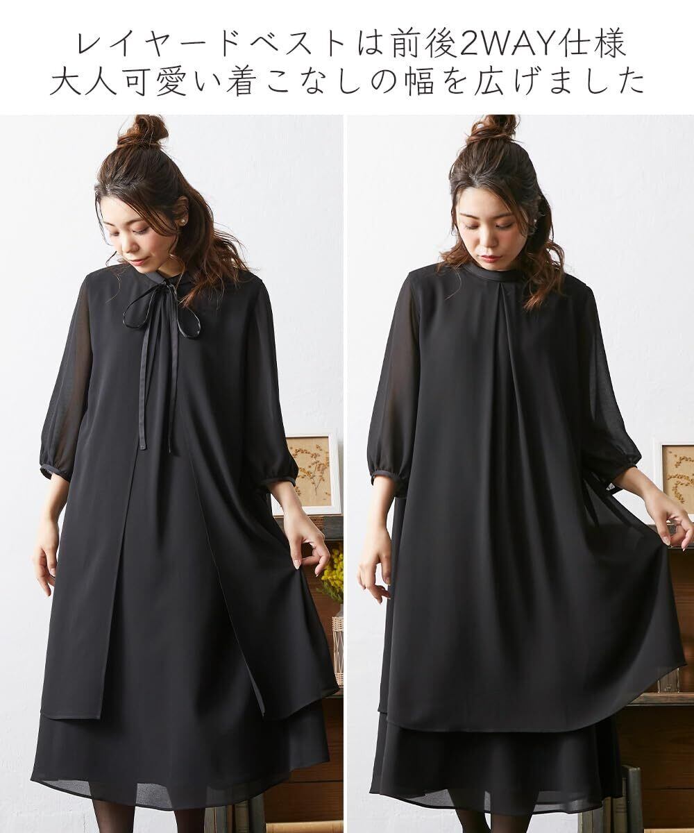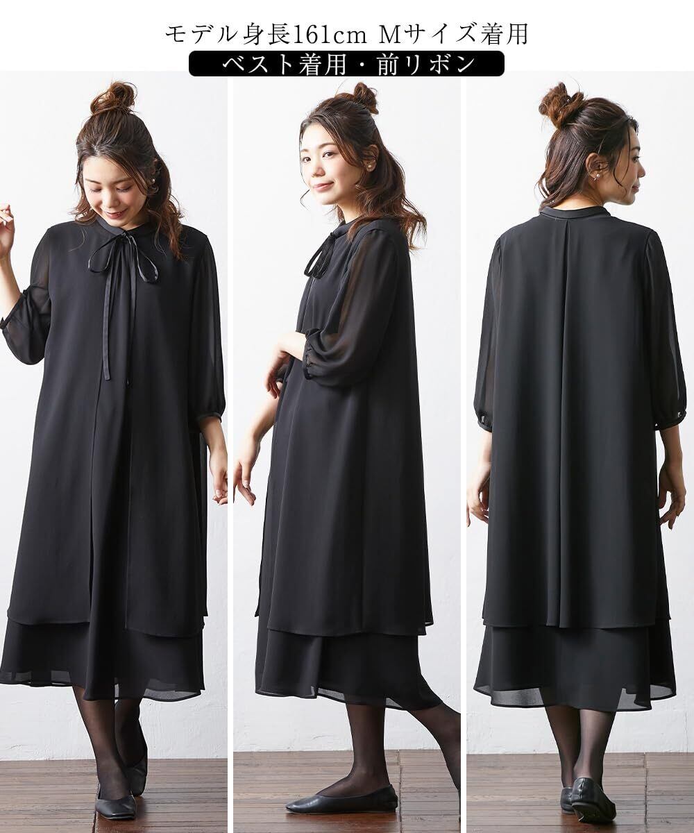 [ニッセン] ブラックフォーマル レディース 【喪服・礼服】 洗える防しわベスト付リボンデザインワンピース 大きいサイズ有 〔Neina〕