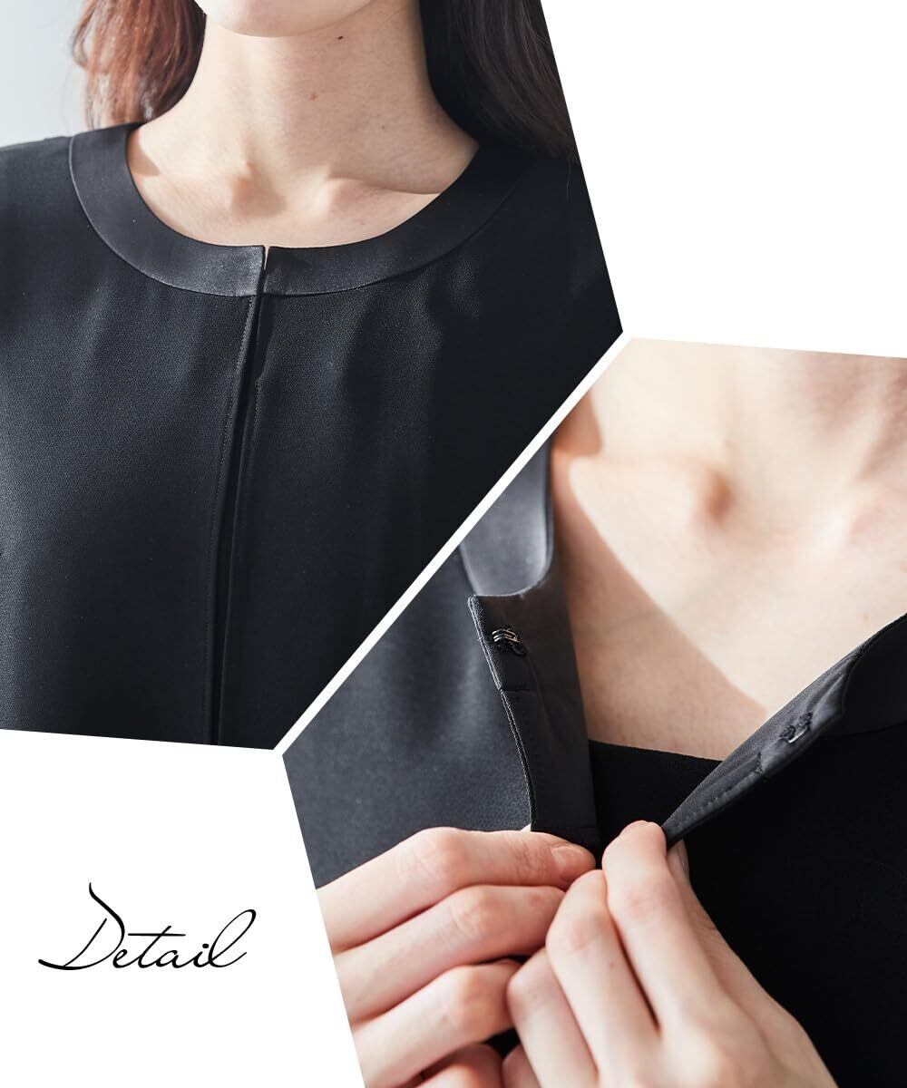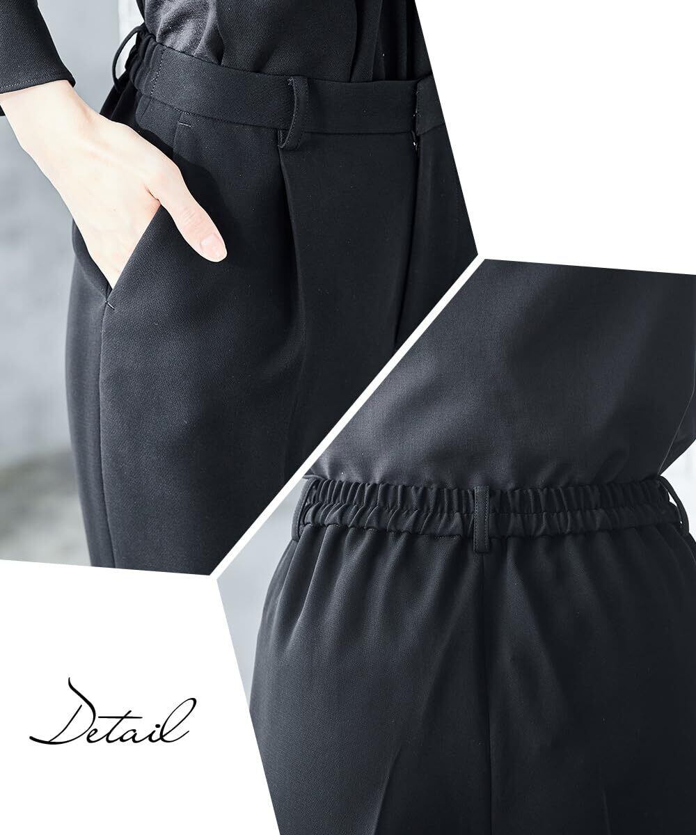 ブラックフォーマル生地(漆黒)を使用、きちんと感のある装いに。防しわ生地で、しわになりにくい