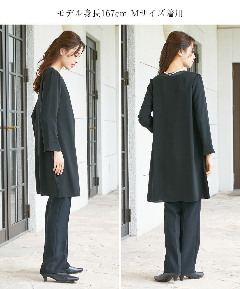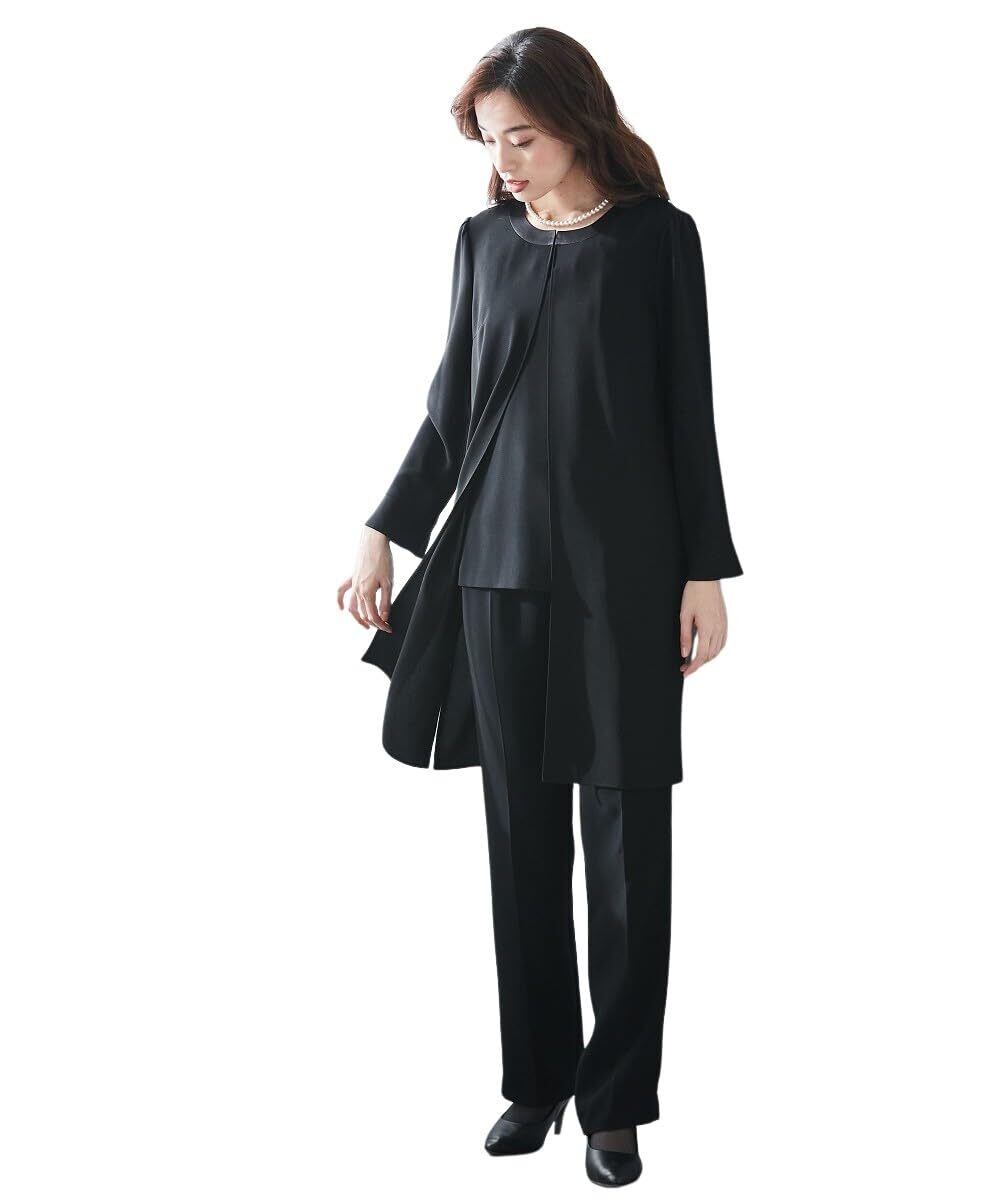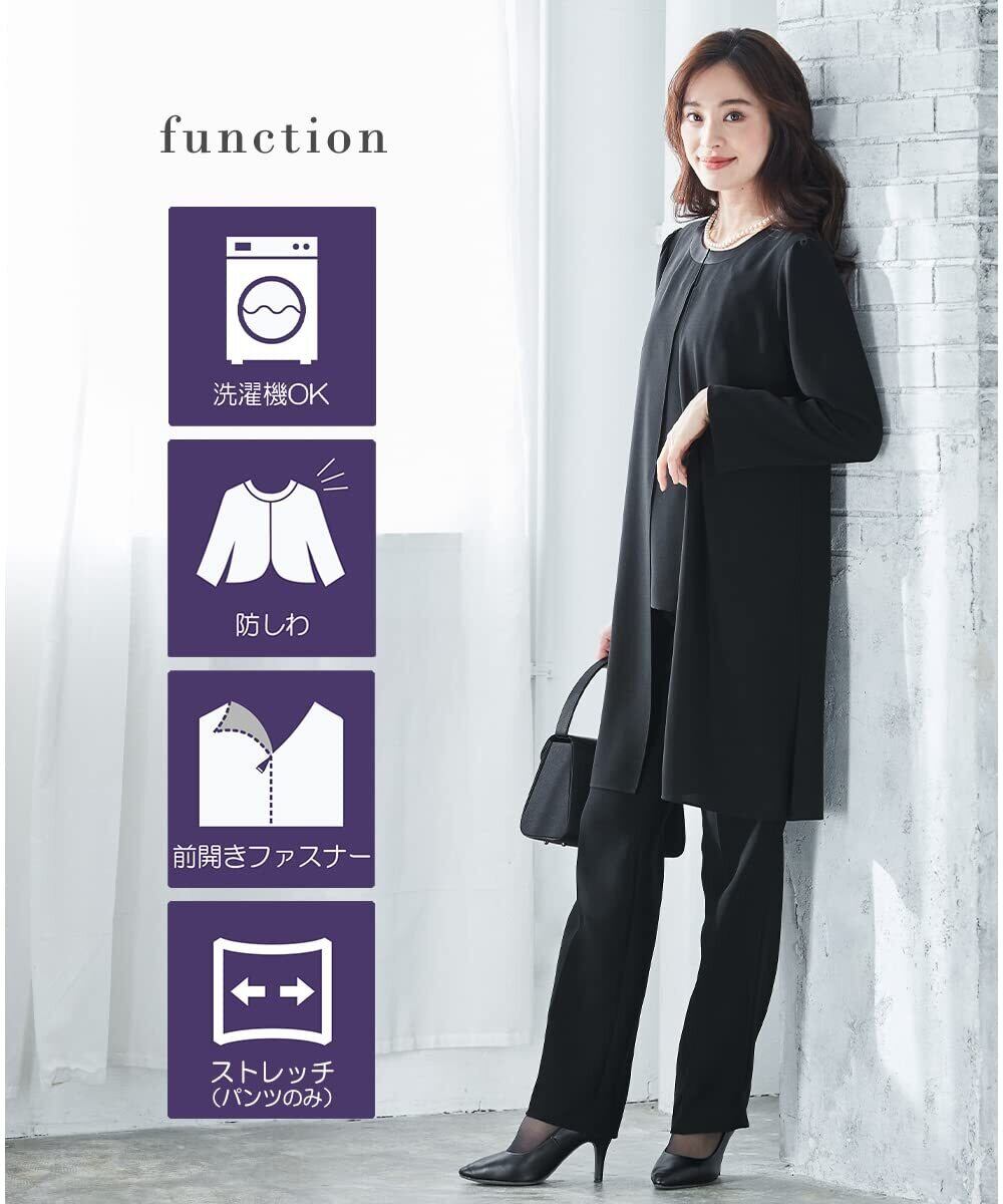 [ニッセン] ブラックフォーマル 【喪服・礼服】 洗える防しわロング羽織重ね着風前開きブラウスストレッチパンツスーツ<大きいサイズ有>