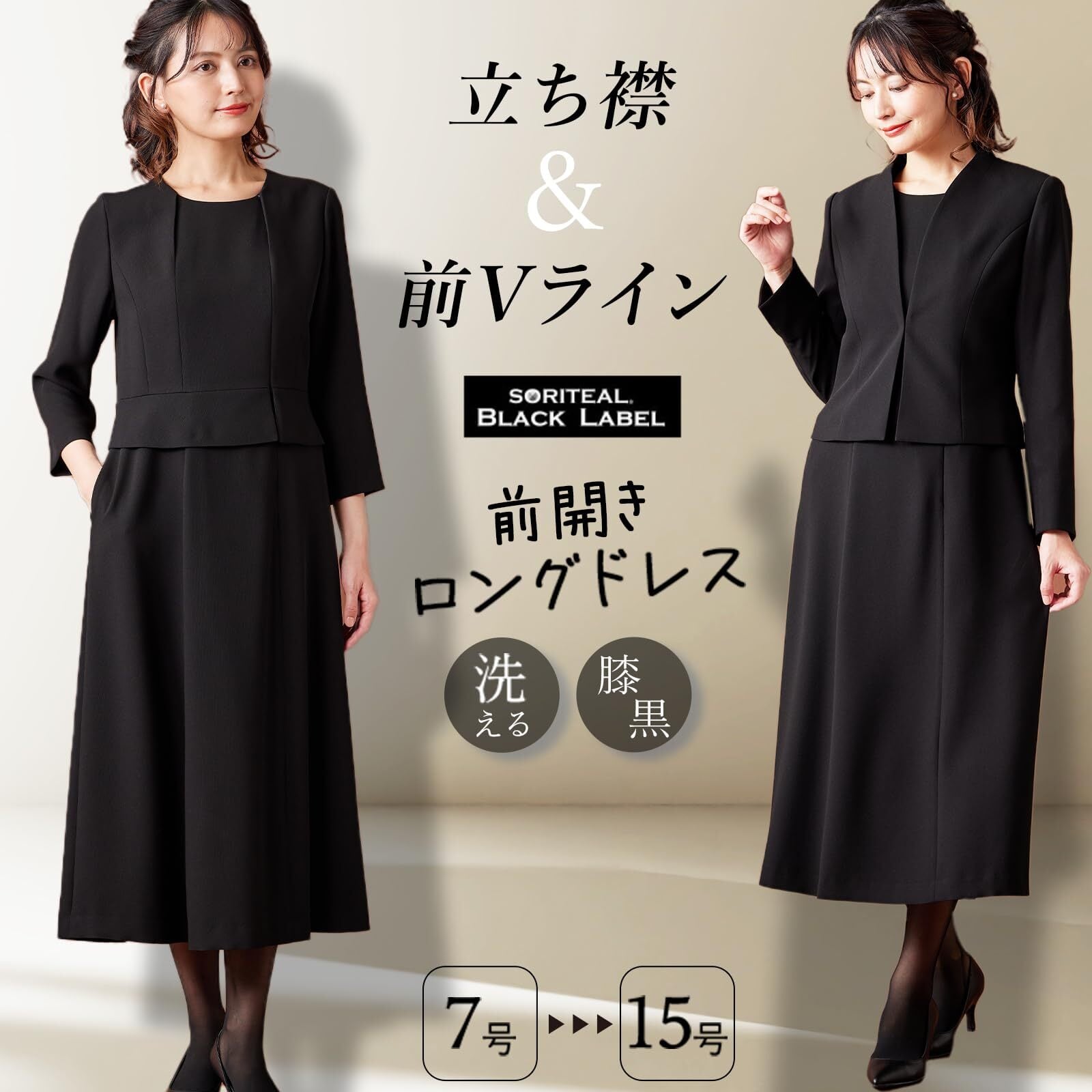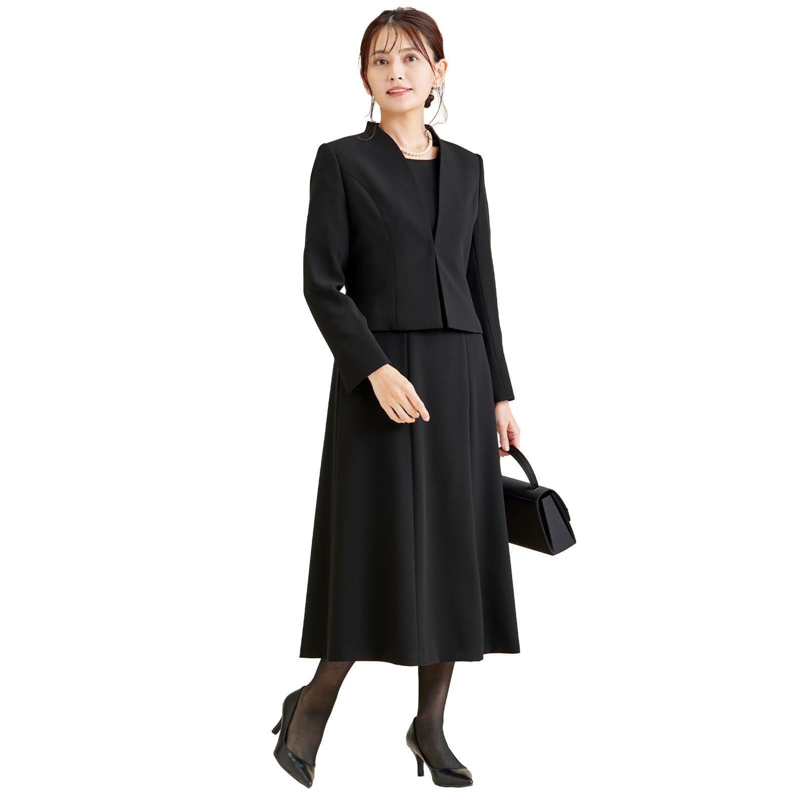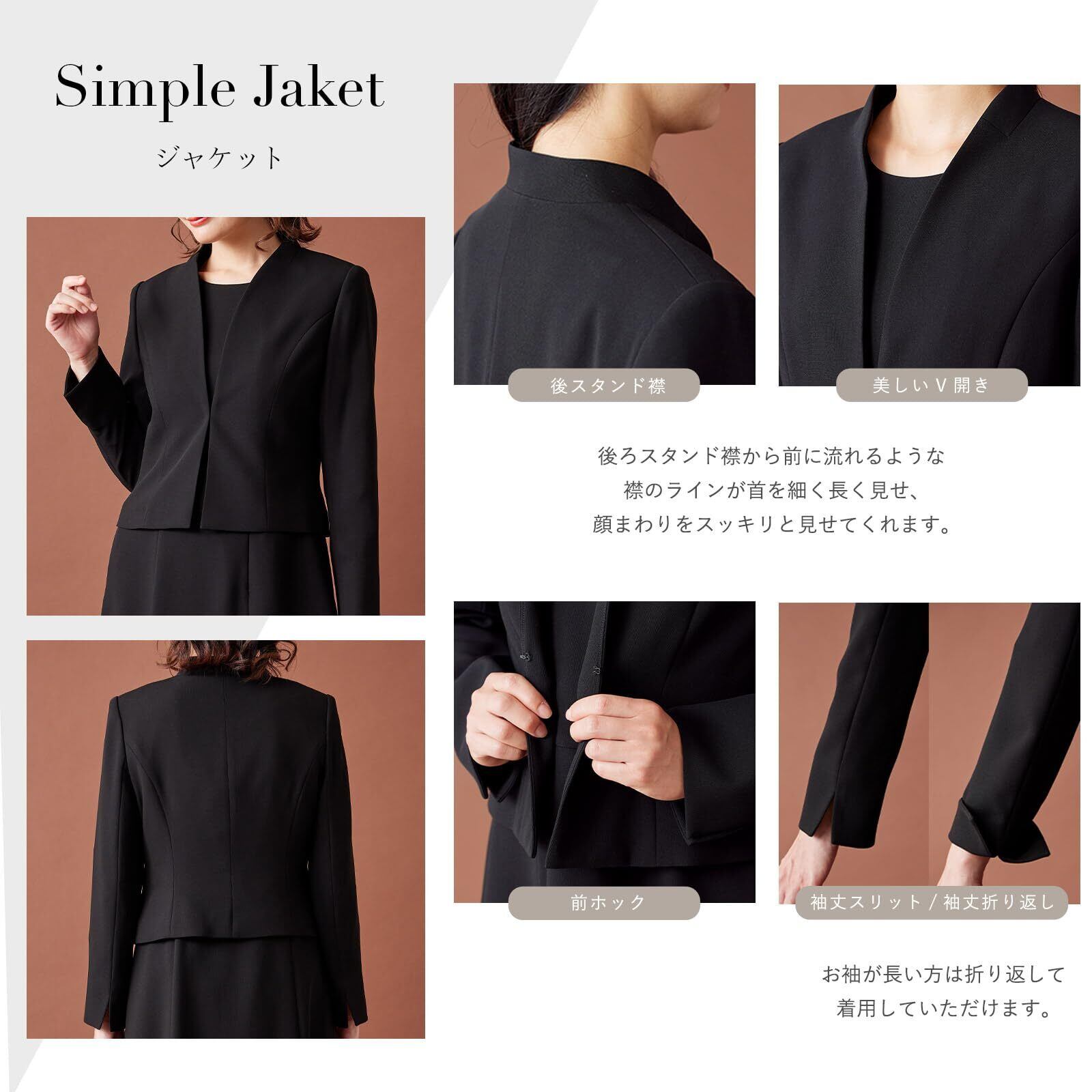 [SORITEAL] 喪服 ブラックフォーマル ロング丈 立ち襟 Vラインジャケット 礼服 正礼装 冠婚葬祭 葬式 法事 レディース 洗える 110031655