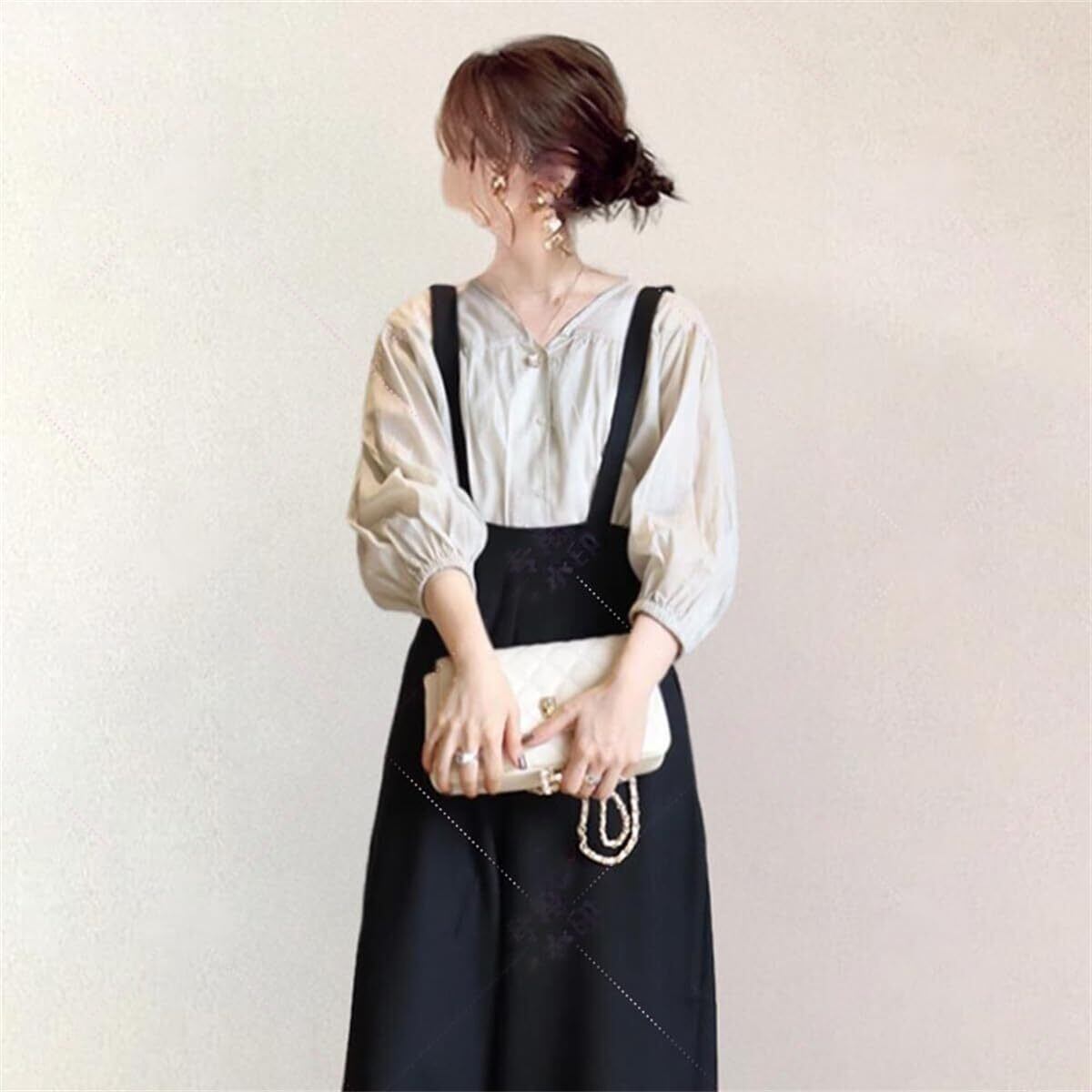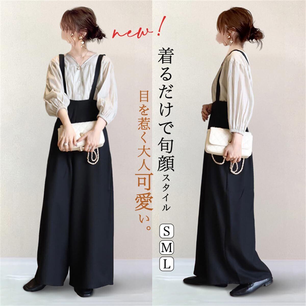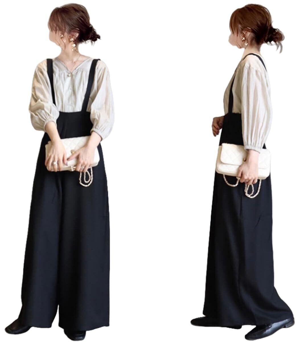 【在庫処分】[YUANYUAN] サロペット レディース オールインワン ロングパンツ ワイドパンツ オーバーオール 夏服 長ズボン ロング丈 ブラック カジュアル ゆったり 可愛い 体型カバー 通学 通勤 大人 学生 普段着 春夏 | 無意味ステッカー