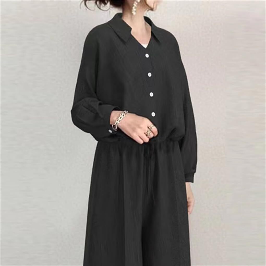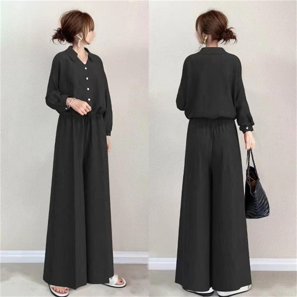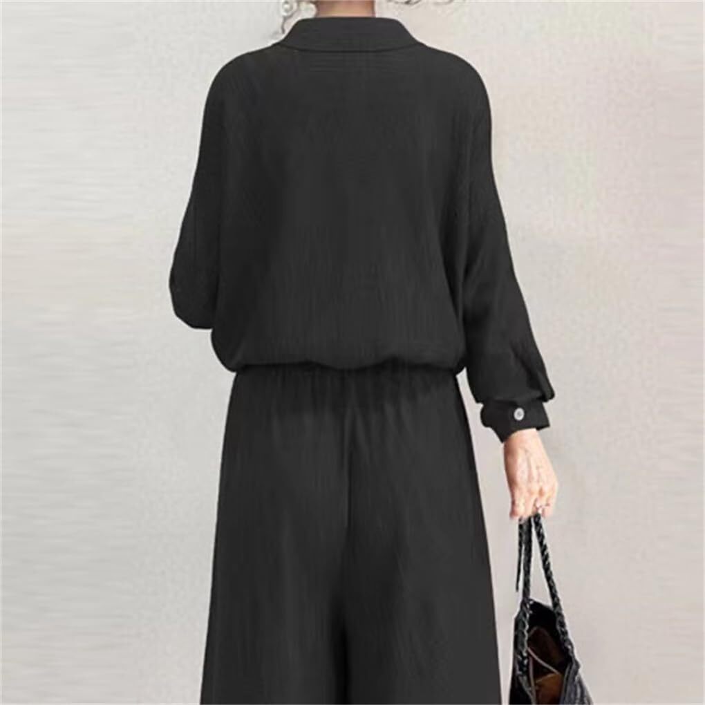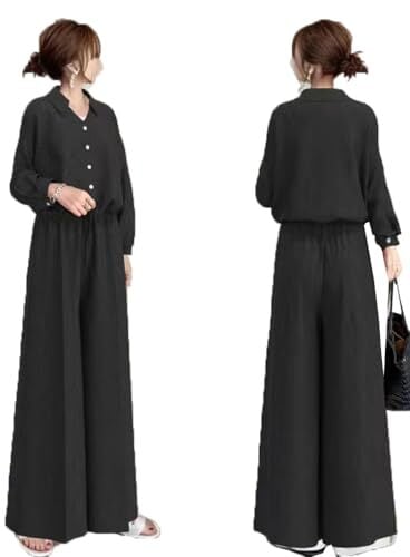 どんな着こなしにも合わせやすいすっきりとしたベーシックなフォルムが魅力!ゆったりとしたシルエット&合わせやすい無地なツーピースセット、着回しの強い味方になりそうですね。歩く度に?れる裾が女性らしさをに醸し出します。シンプルなパンツドレスだからアクセサリーや小物とで色々アレンジができます。