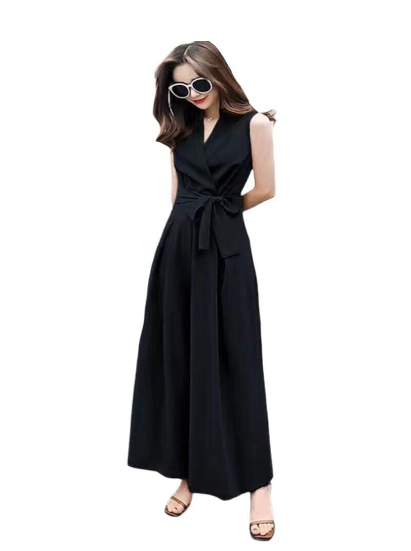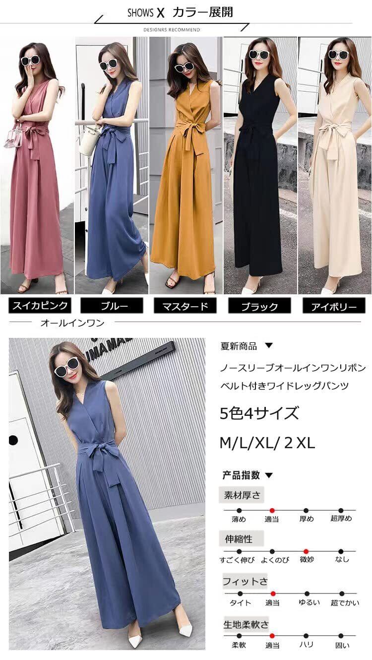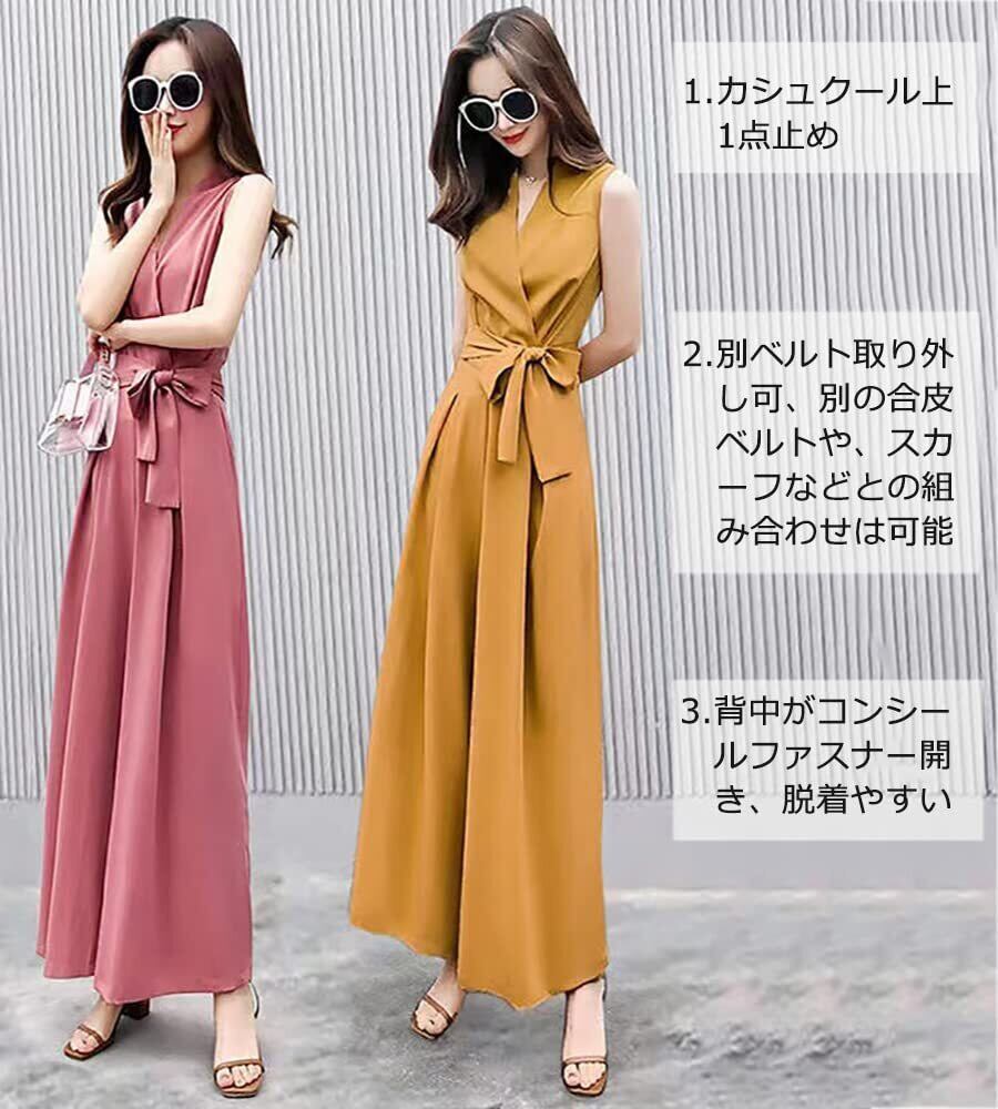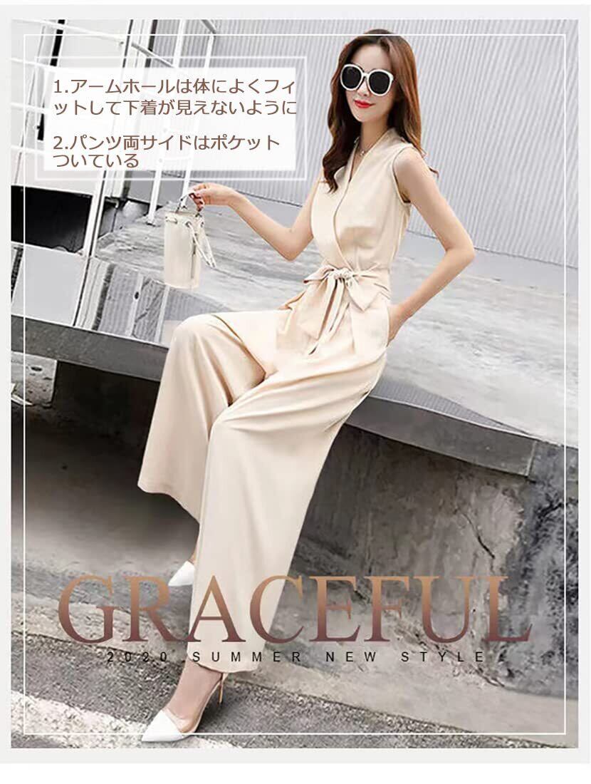 [Collecala] オールインワン Vネック セットアップ ワイドレッグ ロングパンツ ドレス スーツノースリーブ オーバーオール フォーマルパーティードレス レディース夏服S/M/L/XL/2XL