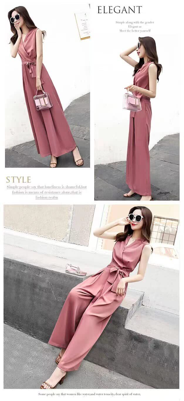【2022最新】[Collecala] オールインワン Vネック セットアップ ワイドレッグ ロングパンツ ドレス スーツノースリーブ オーバーオール フォーマルパーティードレス レディース夏服S/M/L/XL/2XL | 無意味ステッカー