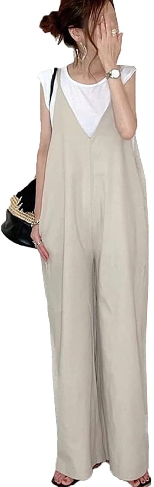 [DYIOPMFGZ] レディース オールインワン サロペット パンツ オーバーオール ワイドパンツ ジャンパー ズボン ロングパンツ ガウチョパンツ サスペンダー サロペットパンツ パンツドレス つり カジュアル ロング マキシ 春夏秋 ゆったり 体型カバー