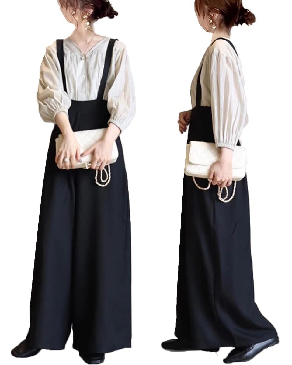 [YINGDIE] オールインワン レディース サロペット ワイドパンツ ロングパンツ オーバーオール サロペットパンツ ジャンパーパンツ ジャンパーズボン ガウチョパンツ サスペンダー パンツ ズボン ロング マキシ つり カジュアル ゆったり 春夏秋冬