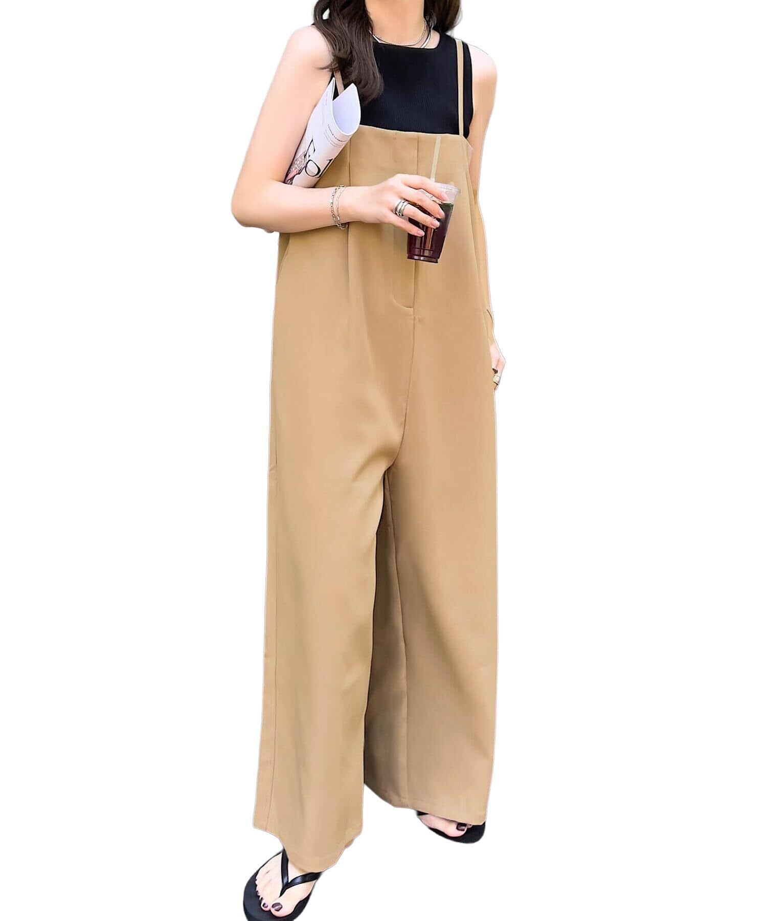 ラフに着られてこなれ感たっぷり、毎日のコーデに頼れるタック切り替えキャミサロペット。