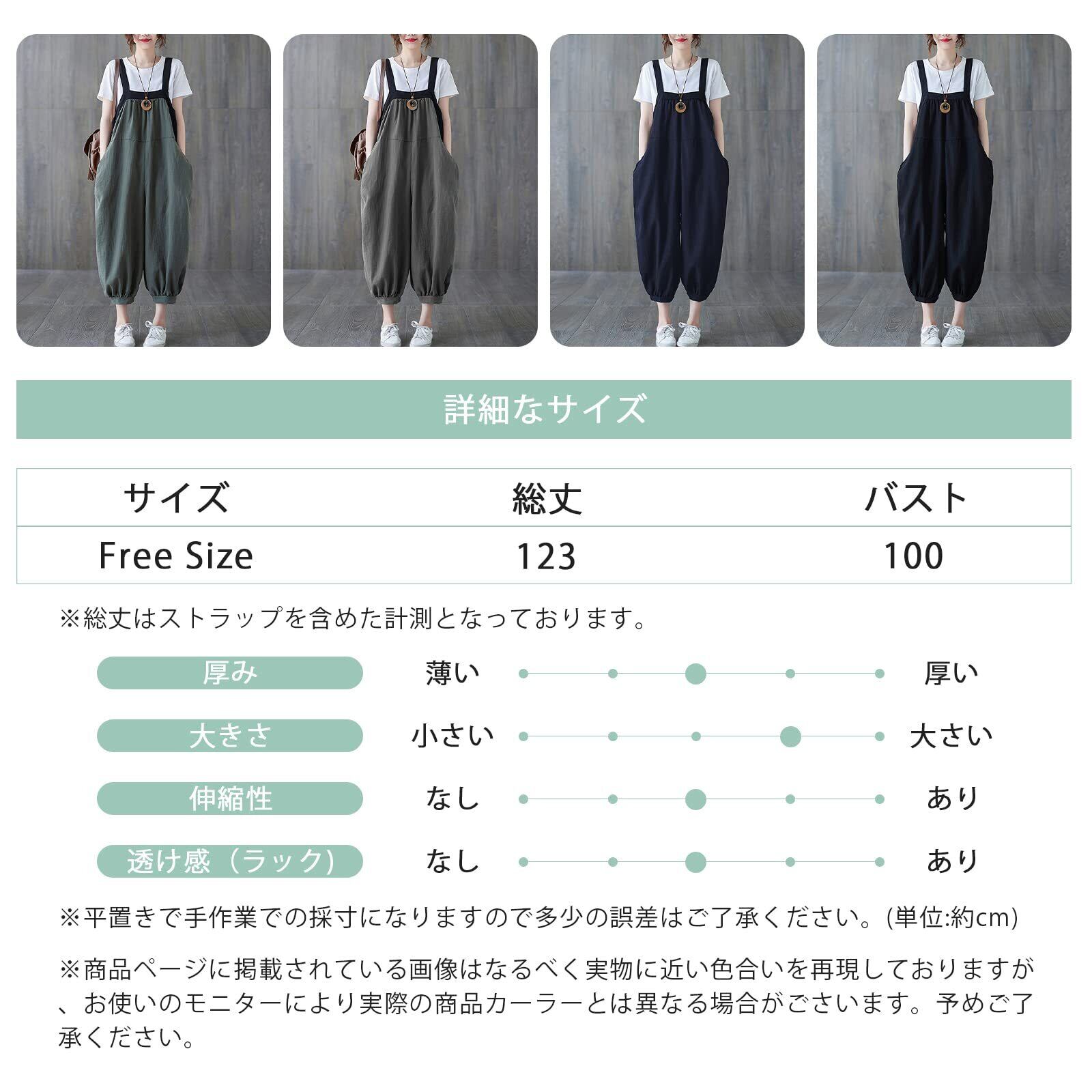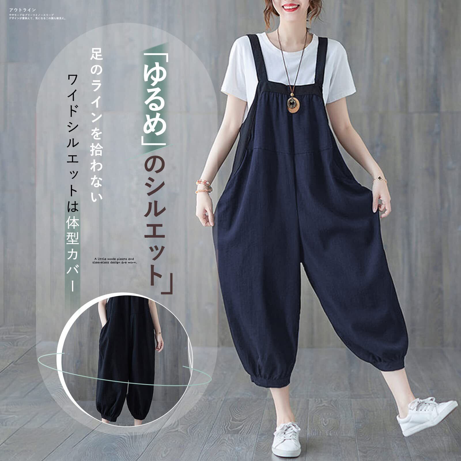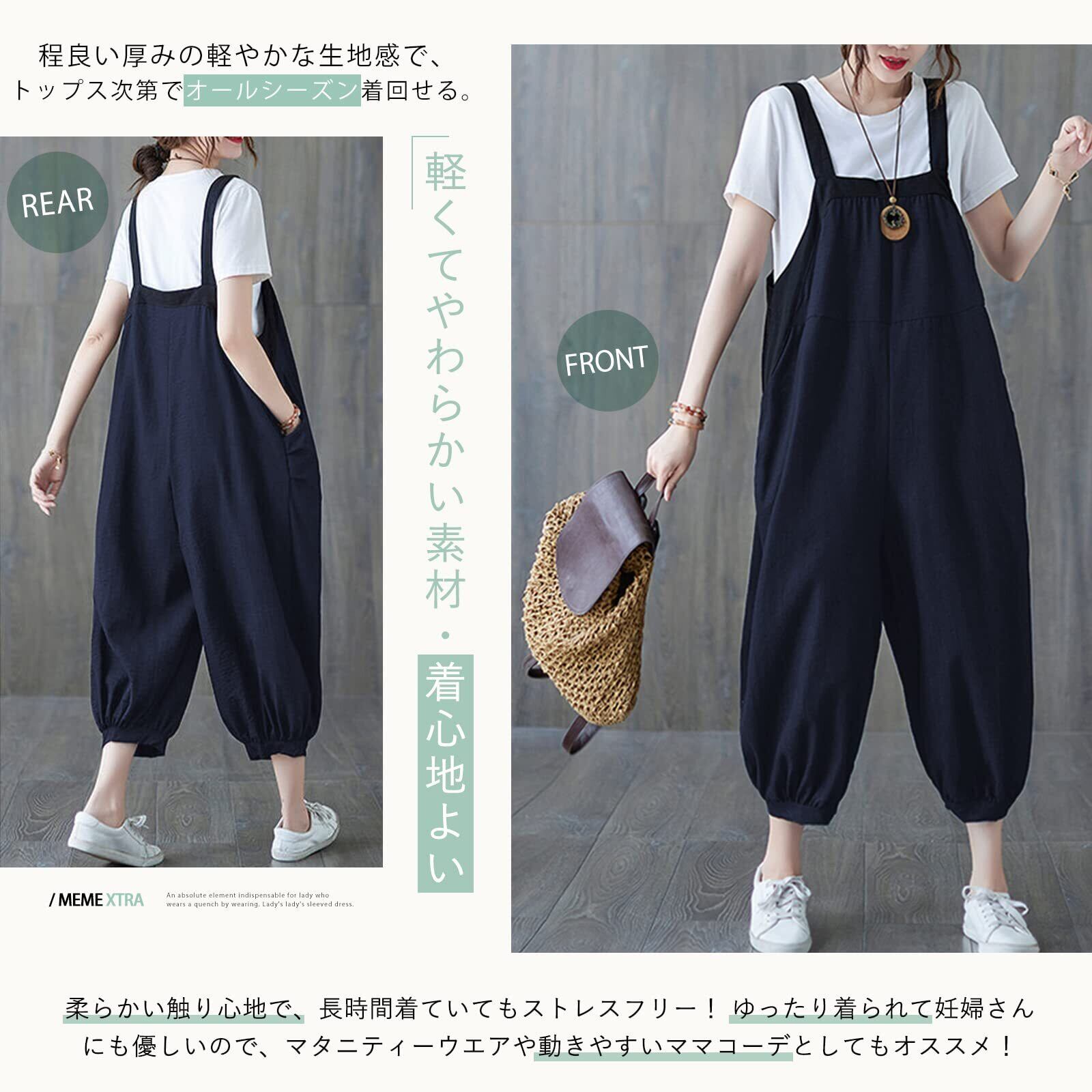 [MEME XTRA] メメエクストラ サロペット レディース オールインワン オーバーオール リネン ロングパンツ 秋 冬 ゆったり 大きいサイズ カジュアル パンツ ロング 無地 着痩せ ボトムス 綿麻 涼しい シンプル ワイドパンツ 韓国 黒 グリーン
