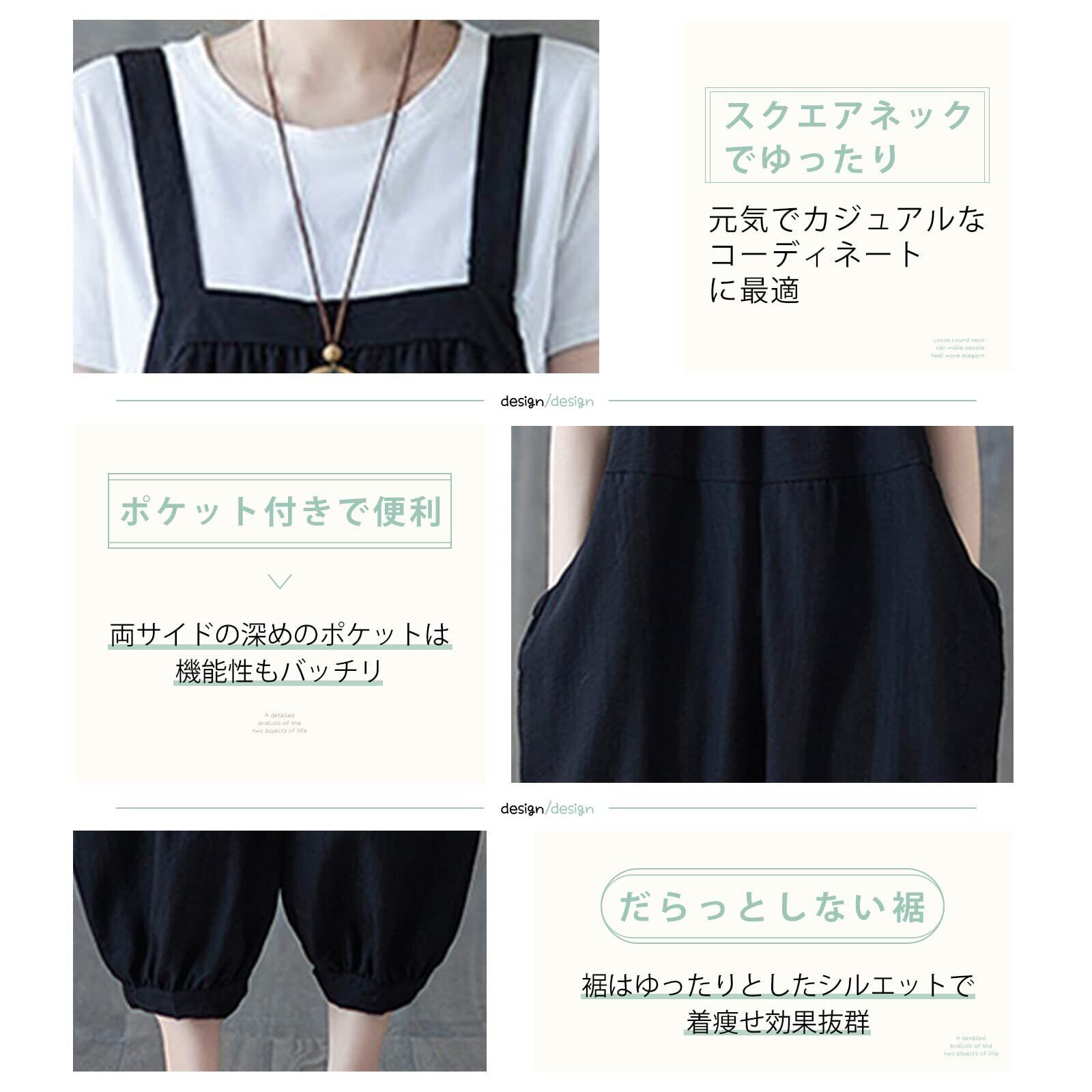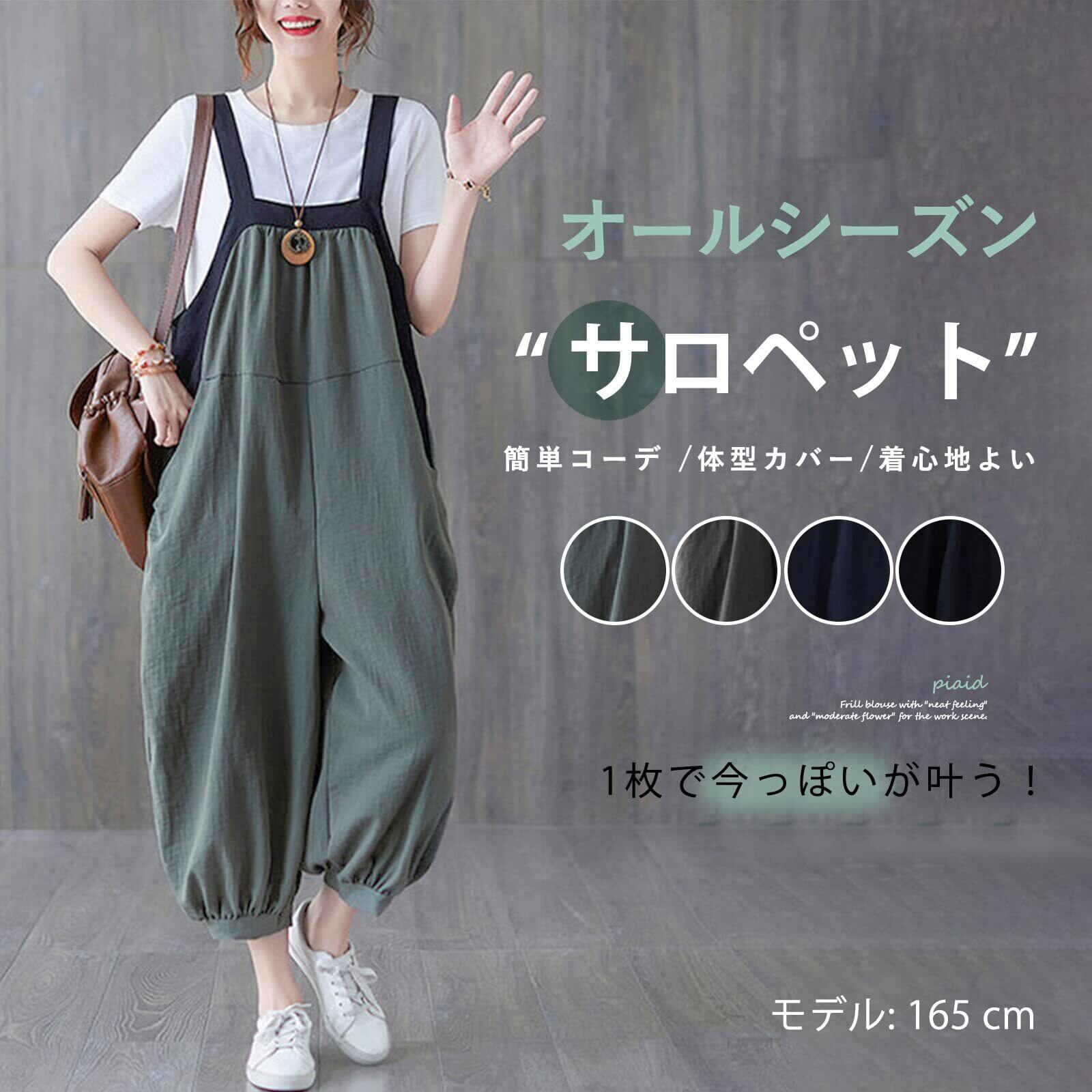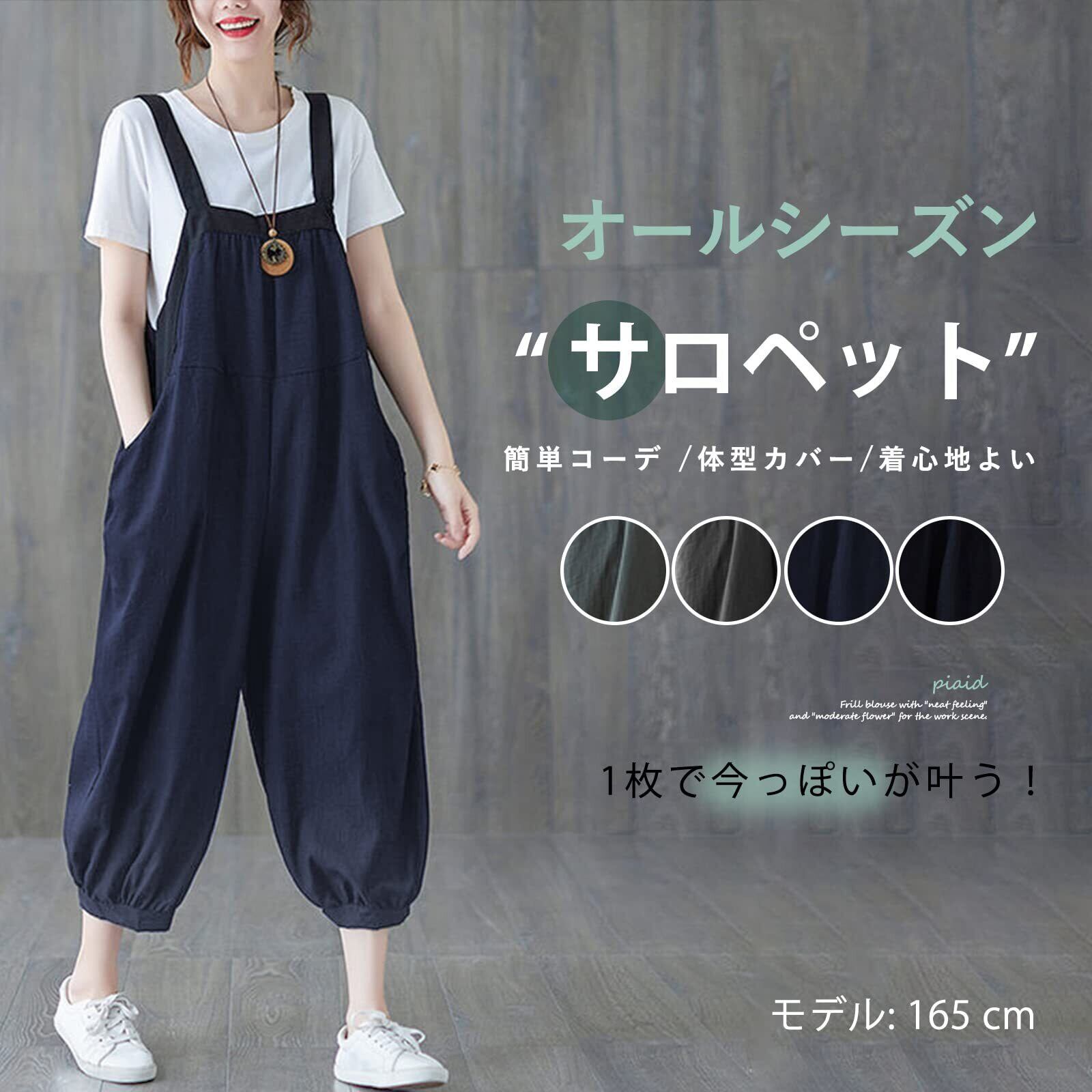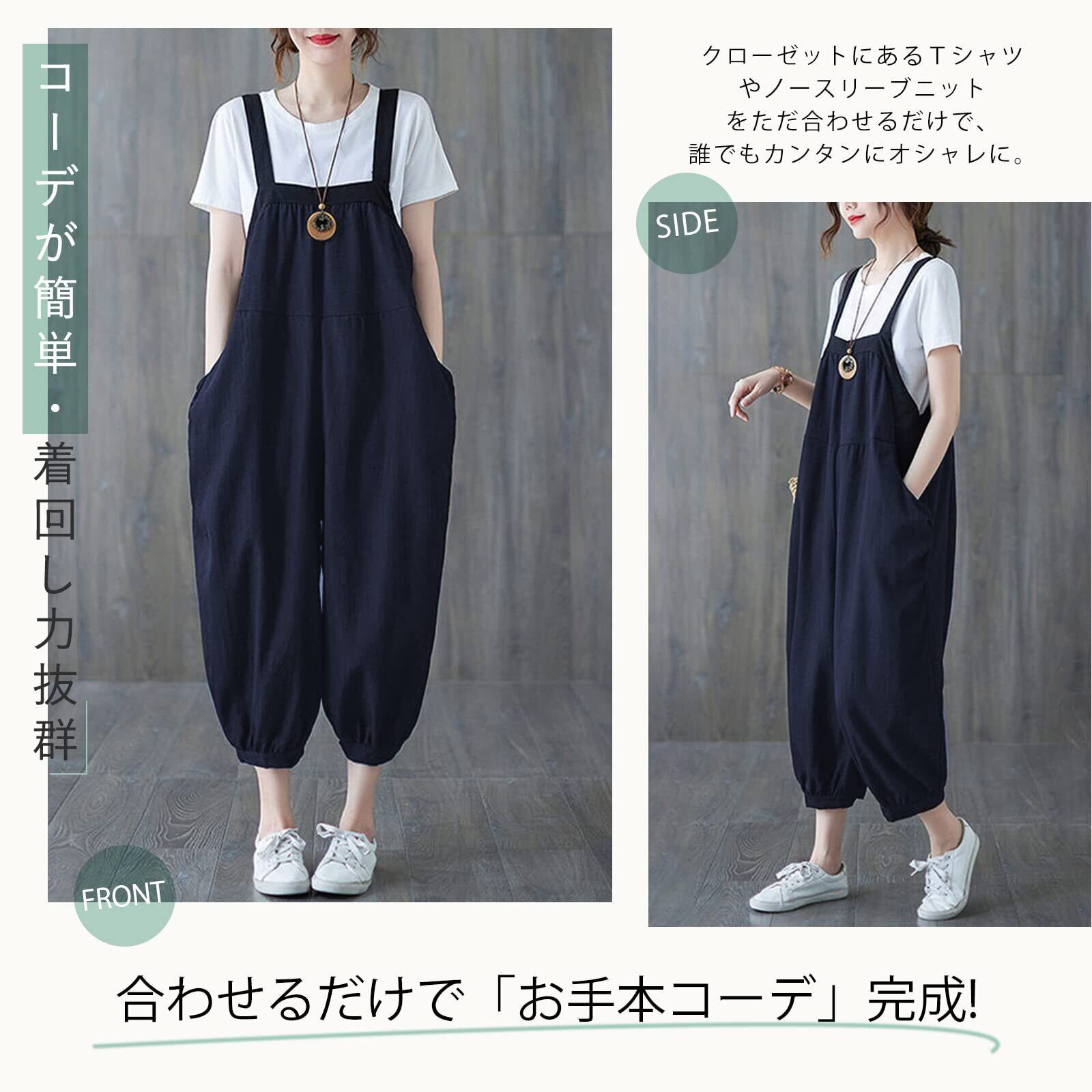 [MEME XTRA] メメエクストラ サロペット レディース オールインワン オーバーオール リネン ロングパンツ 秋 冬 ゆったり 大きいサイズ カジュアル パンツ ロング 無地 着痩せ ボトムス 綿麻 涼しい シンプル ワイドパンツ 韓国 黒 グリーン