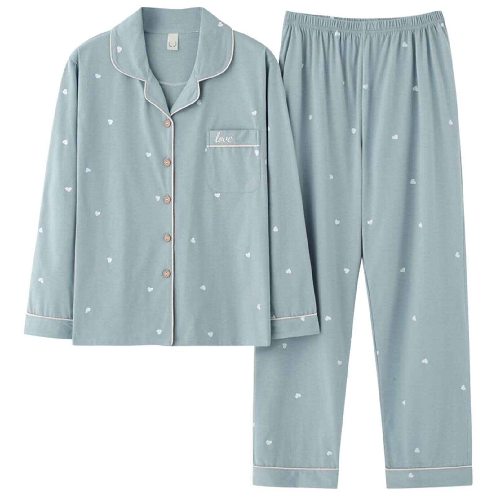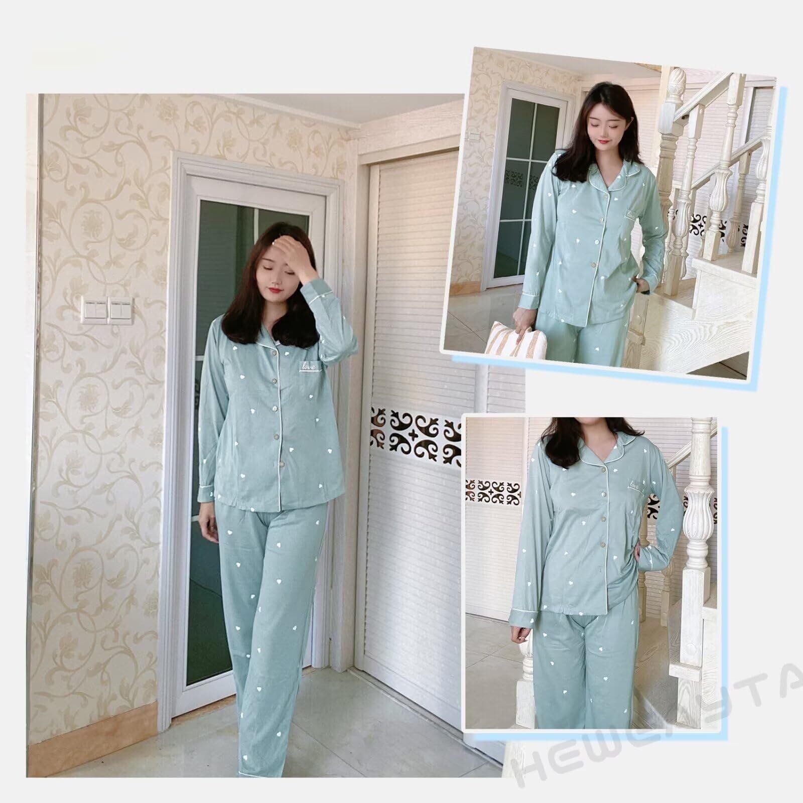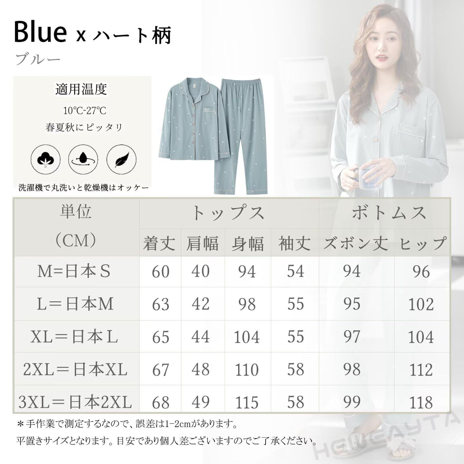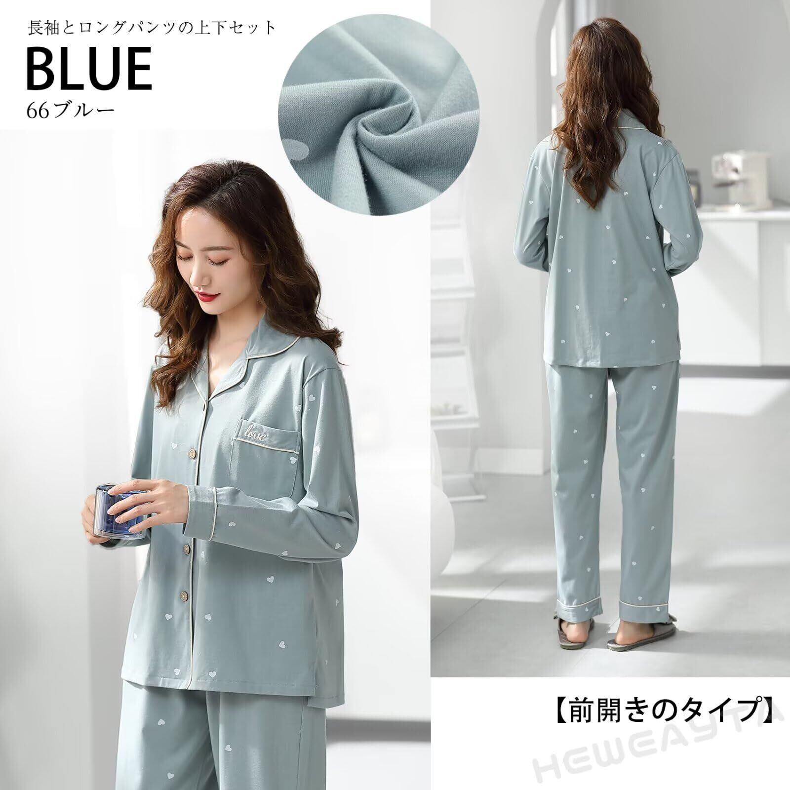 [HEWEAYTA] パジャマ レディース 春夏秋 前開き - 部屋着 長袖 上下セット ルームウエア 快適 ゆったり 柔らかい M-3XL