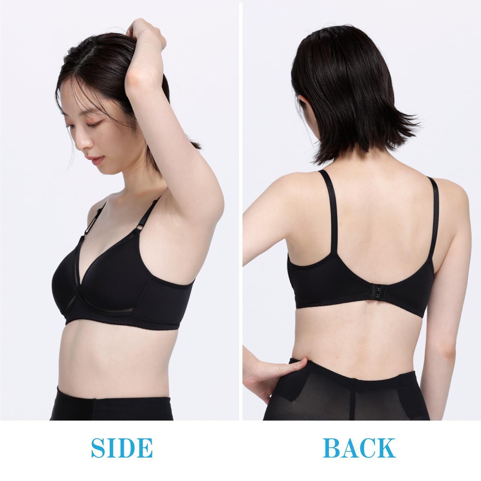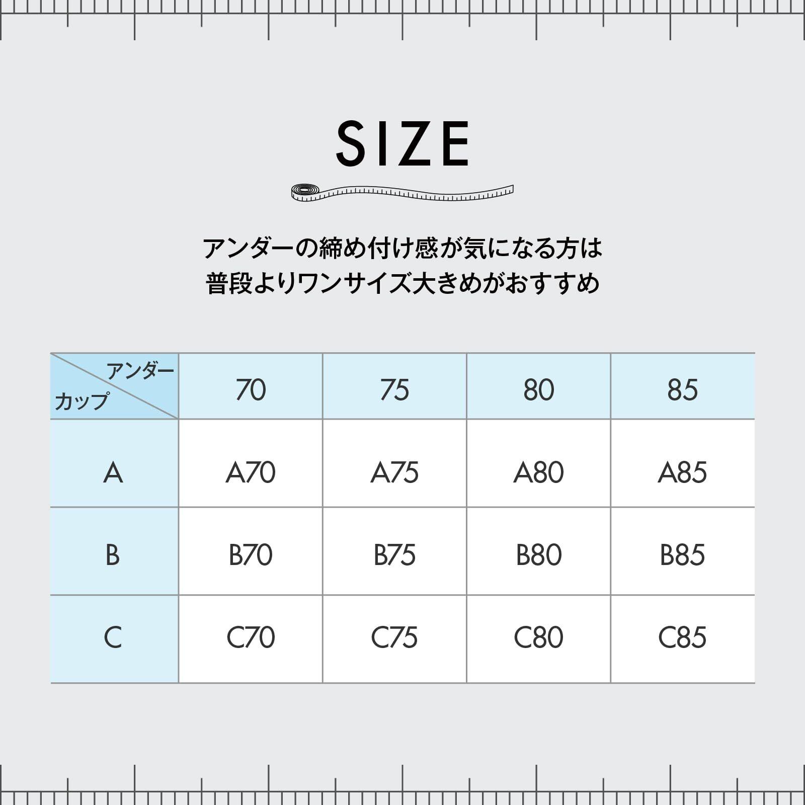 ・ブラジャーのカップ部分は、Tシャツのようなぴったりしたアウターの着用時でも、シルエットがひびきにくいモールドカップを使用。クセの無いシンプルで飽きのこないデザイン