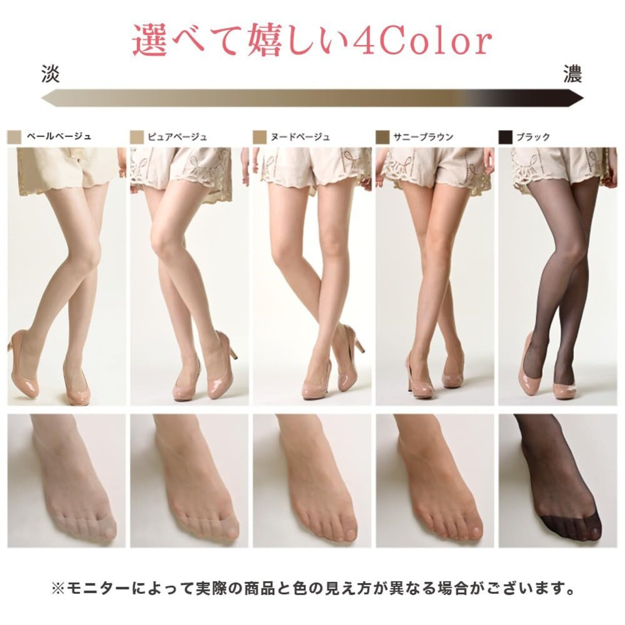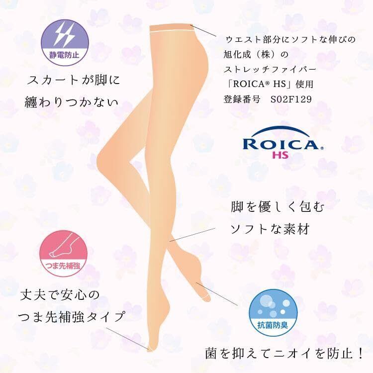 肌を美しく見せる17デニール✨:素肌のような透明感と自然なツヤ感を叶える17デニール設計。薄手でもしっかりと脚をカバーし、美脚効果を演出してくれます。