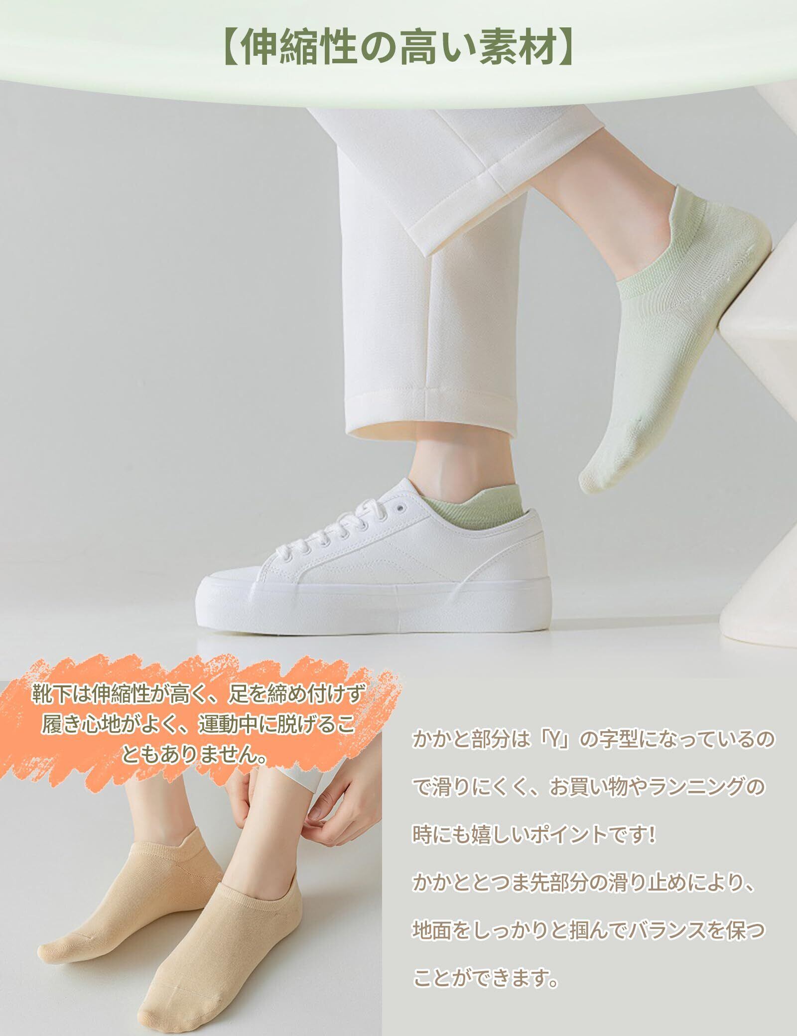 【高い伸縮性 くるぶしソックス】足首周りに伸縮性のあるゴムを使用し、締め付けないゆったりとした履き心地のおしゃれな女性用ソックスです。22~25cmの伸縮性があり、フィット感のある女性用ソックスは、締め付け感がなく快適に履くことができます。 厚手のグリップ生地は耐摩耗性を向上させ、ソックスに「穴」が開く心配がありません。 また、高い伸縮性、優れた通気性、吸汗性、速乾性、耐久性も備えています。