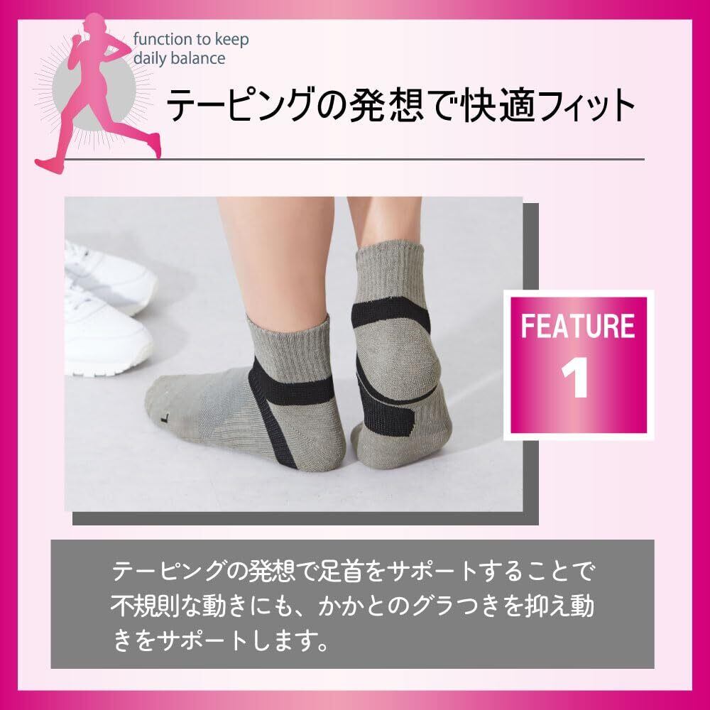 [グンゼ] 靴下 ソックス アクティブスタイル テーピング アーチサポート スニーカー丈 同色3足組 レディース