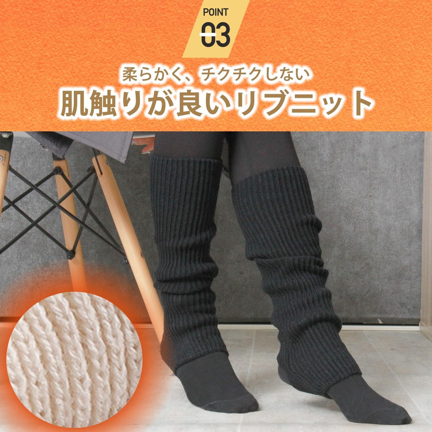 イヤな締め付け感がなく、ゆったりフットのふわふわなウォーマーに仕上げました。